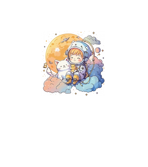 Kawaii Astronaut With A Cat Sitting On The Clouds