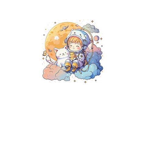 Kawaii Astronaut With A Cat Sitting On The Clouds