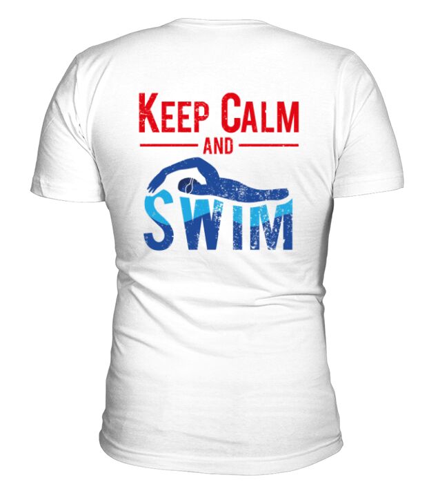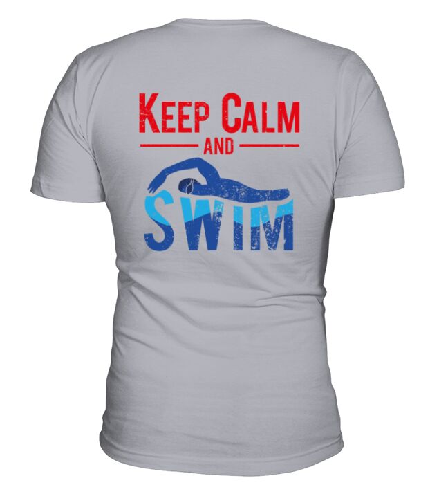Shop keep calm and swim V-Neck T-shirt custom made just for you. Available on many styles, sizes, and colors.