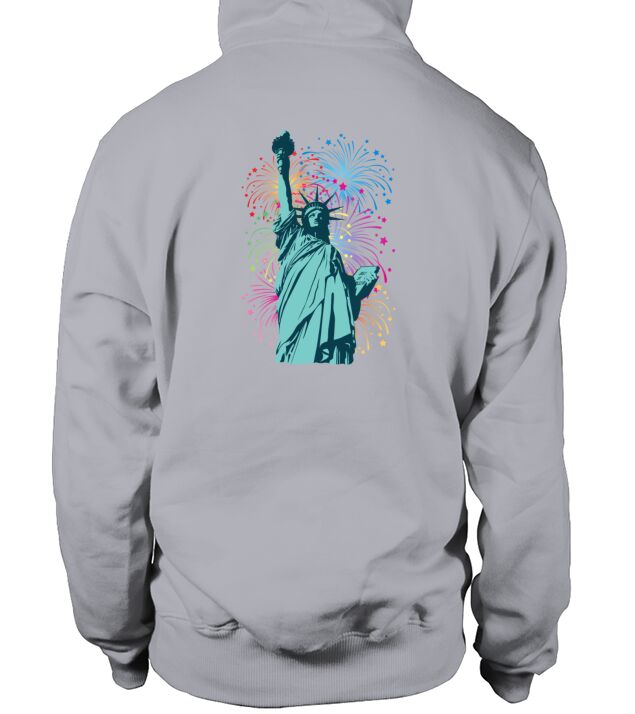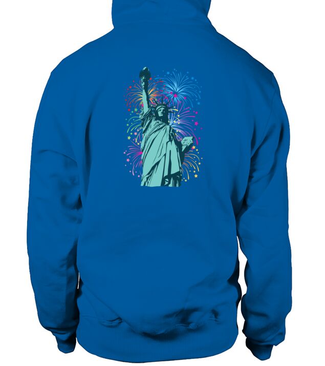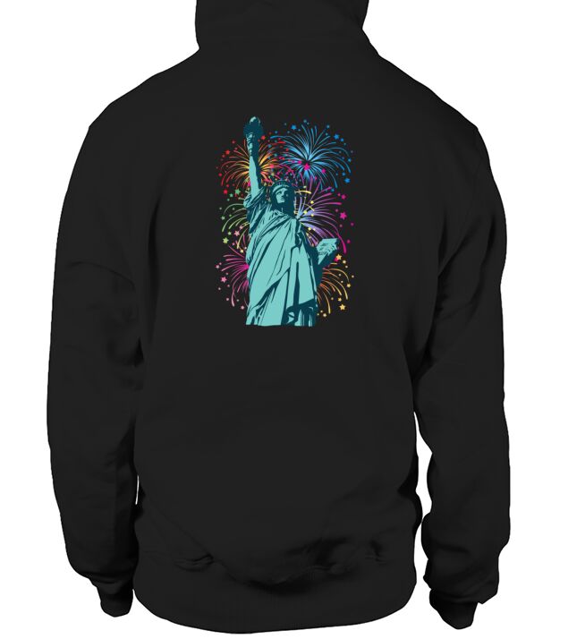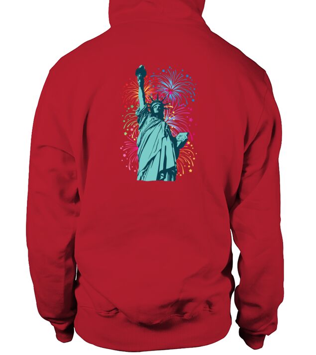Shop Lady Liberty Fireworks Men's Hoodie custom made just for you. Available on many styles, sizes, and colors.
