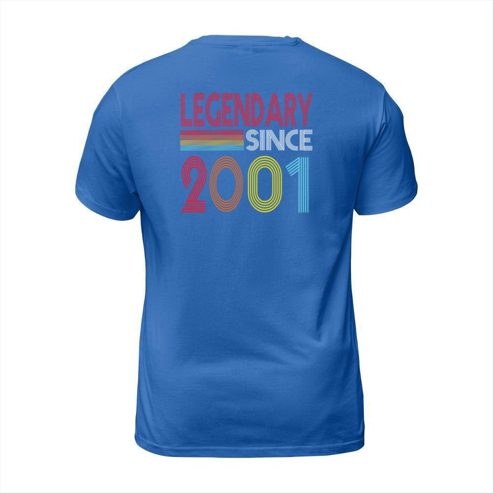 Shop Legendary Since 2001 T-Shirt Unisex custom made just for you. Available on many styles, sizes, and colors.
