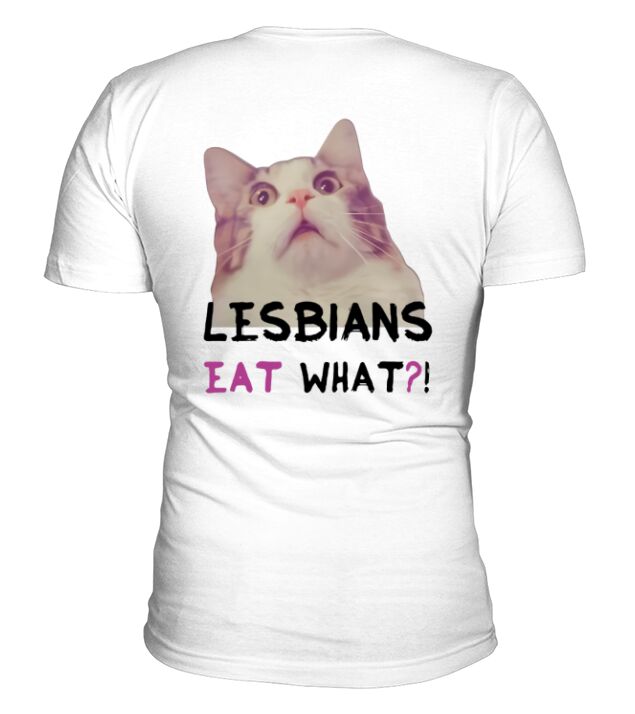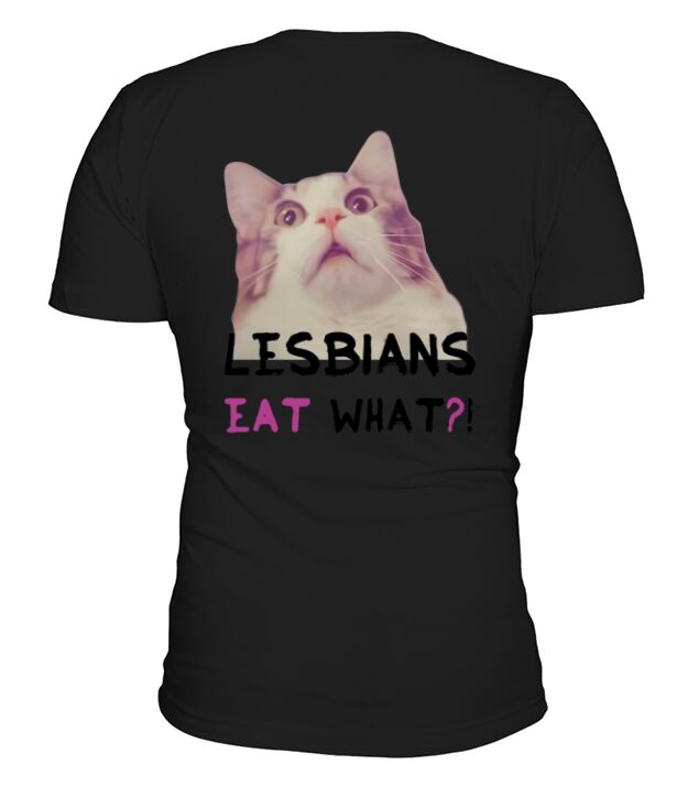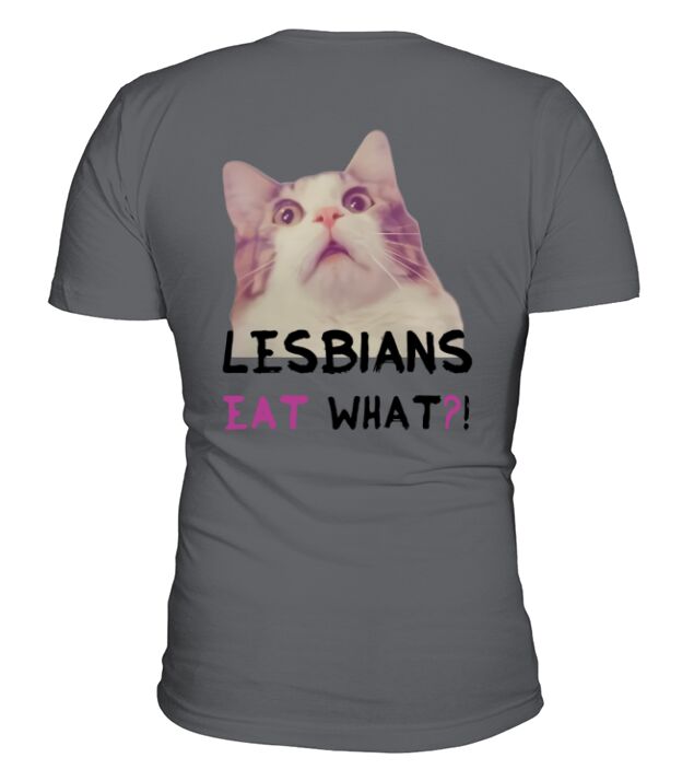 Shop Lesbians eat what? V-Neck T-shirt custom made just for you. Available on many styles, sizes, and colors.