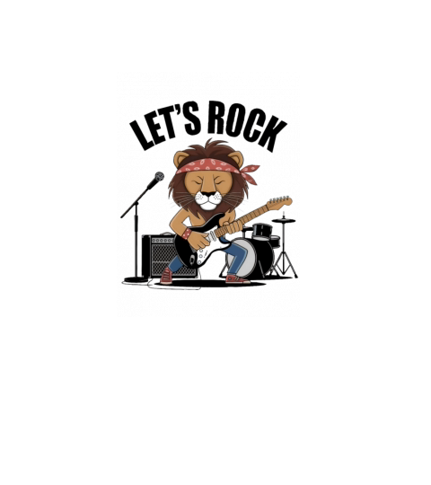Lion playing guitar with drums and mike