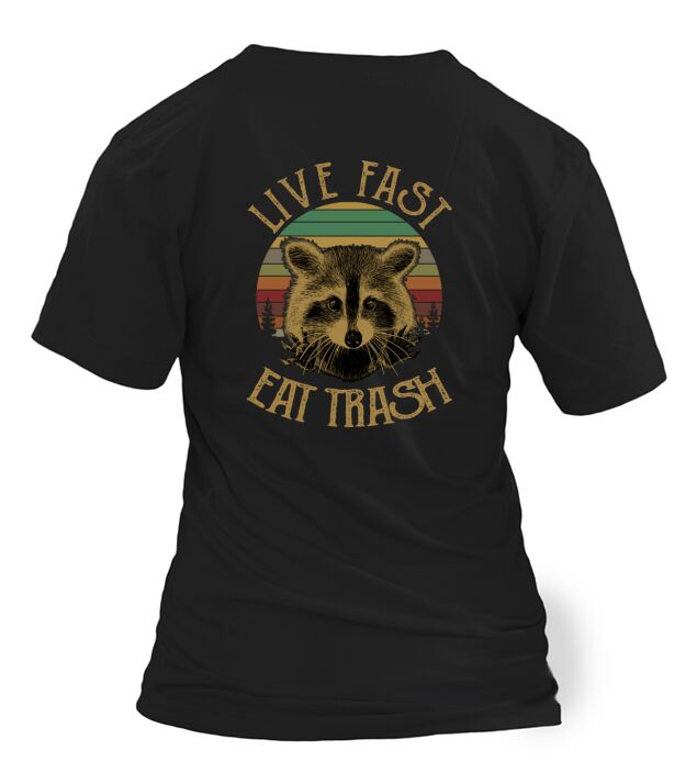 Shop Live Fast Eat Trash T-Shirt Woman custom made just for you. Available on many styles, sizes, and colors.