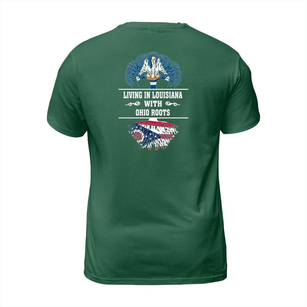 Shop LIVING IN LOUISIANA WITH OHIO ROOTS T-Shirt Unisex custom made just for you. Available on many styles, sizes, and colors.