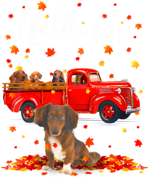 Maple Dachshund Dog Leaf Fall Autumn Red Truck