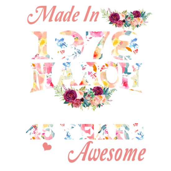 Shop March 1978 Flower 45 Years Of Being Awesome Long sleeved Unisex custom made just for you. Available on many styles, sizes, and colors.