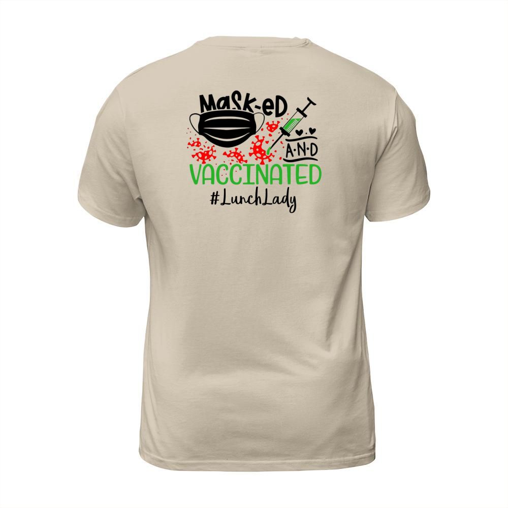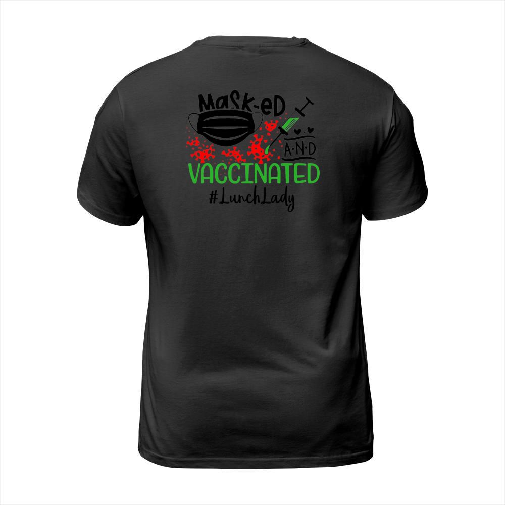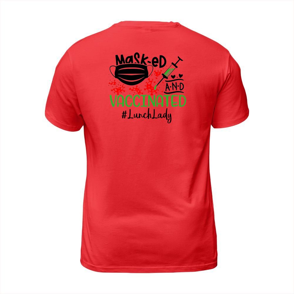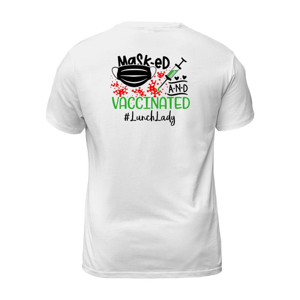 Shop Masked And Vaccinated Lunch Lady T-Shirt Unisex custom made just for you. Available on many styles, sizes, and colors.