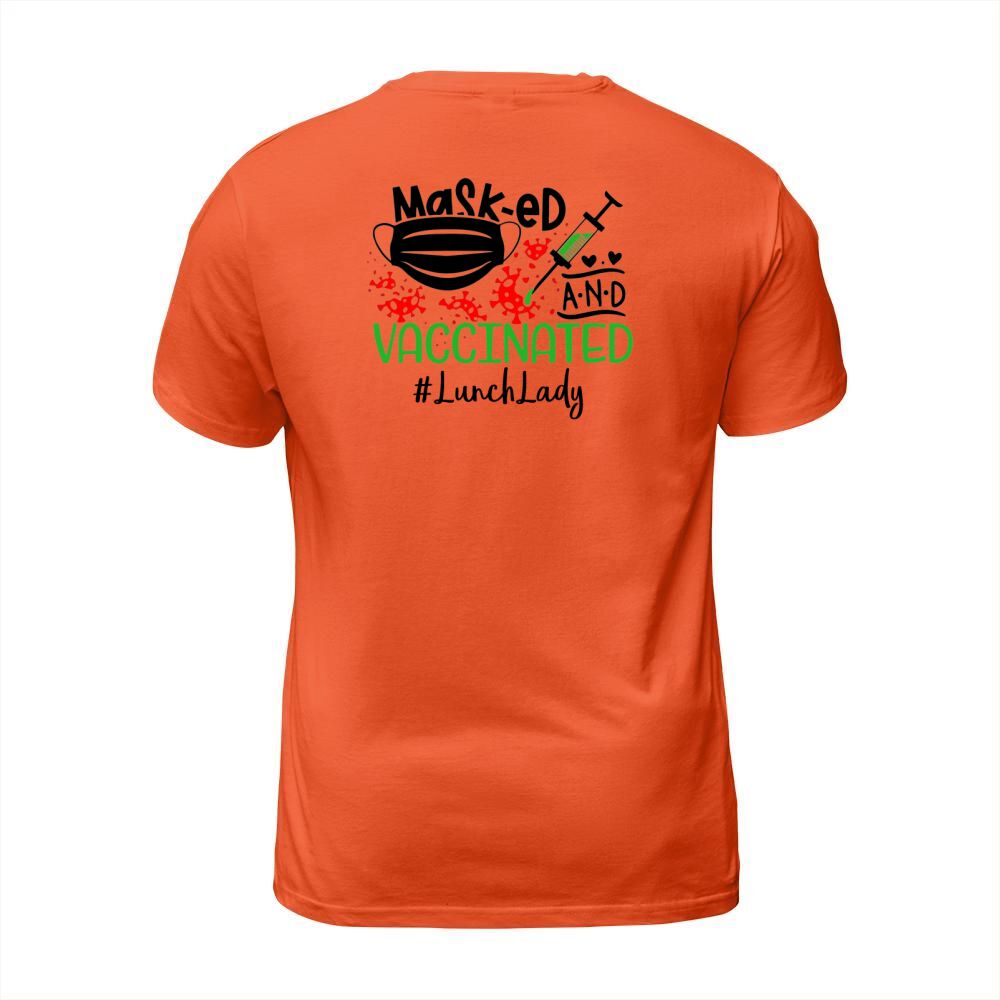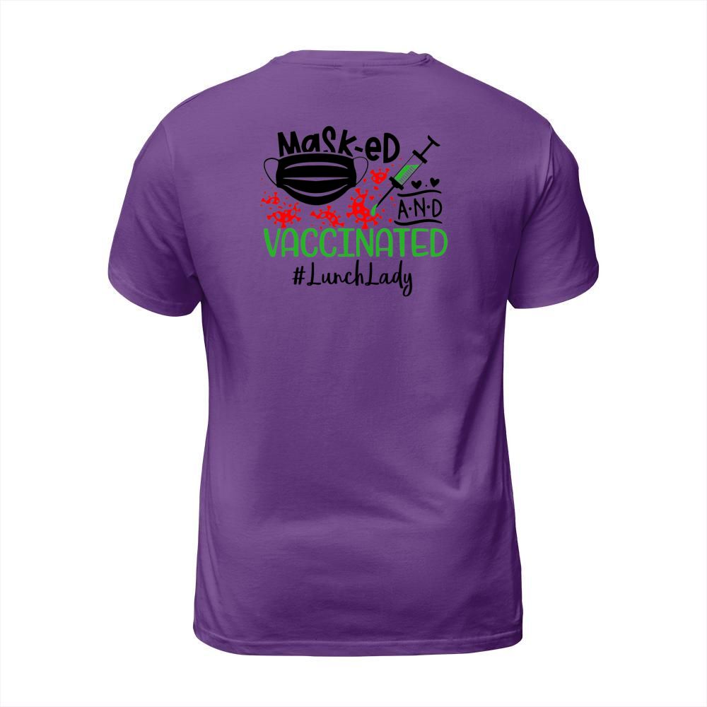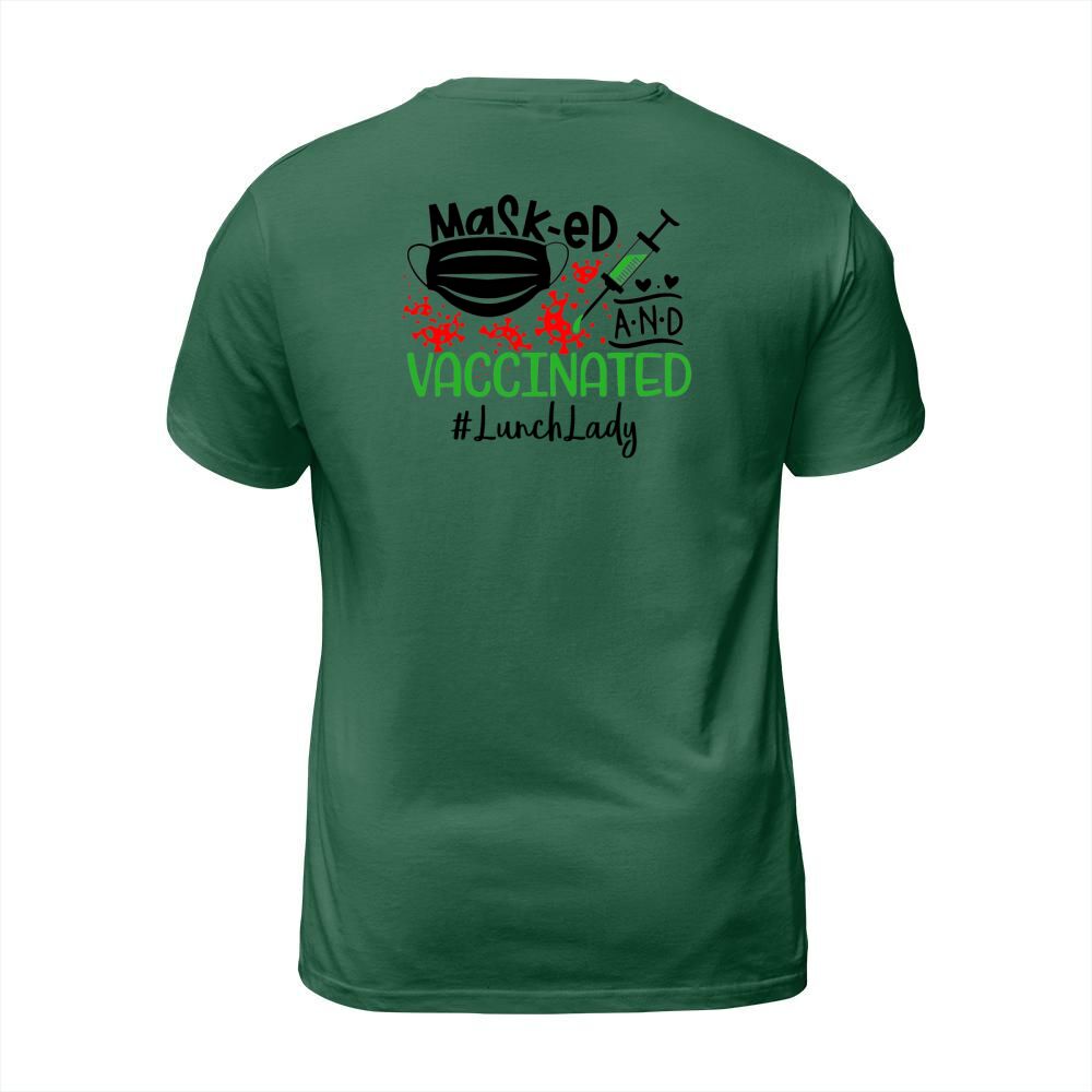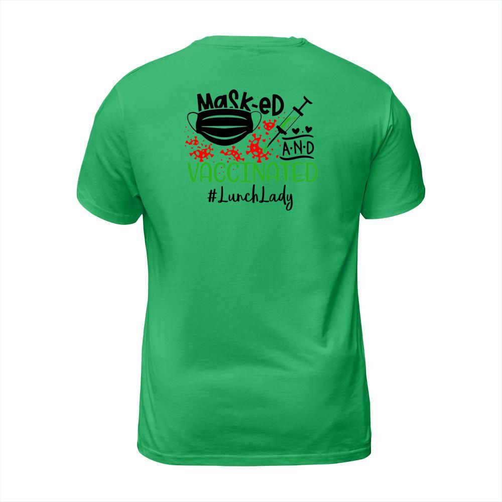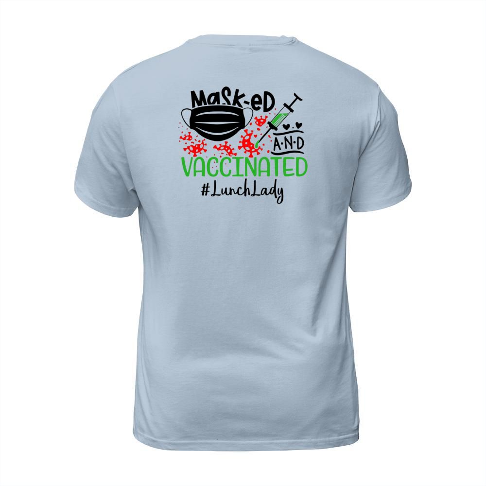 Shop Masked And Vaccinated Lunch Lady T-Shirt Unisex custom made just for you. Available on many styles, sizes, and colors.