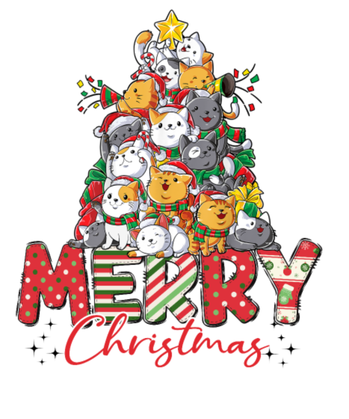Merry Christmas Cat Christmas Tree Xmas