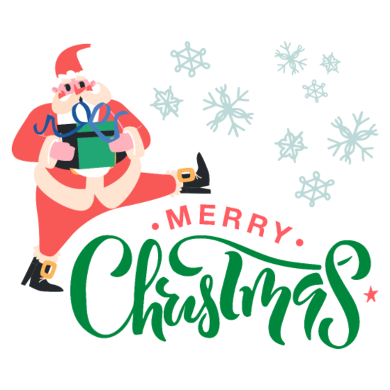 Merry Christmas in Green Font and Pink Santa