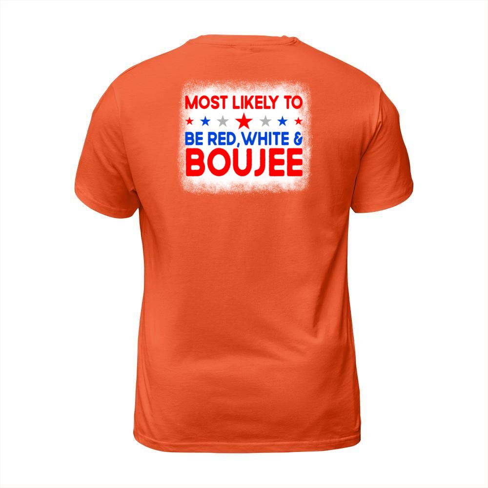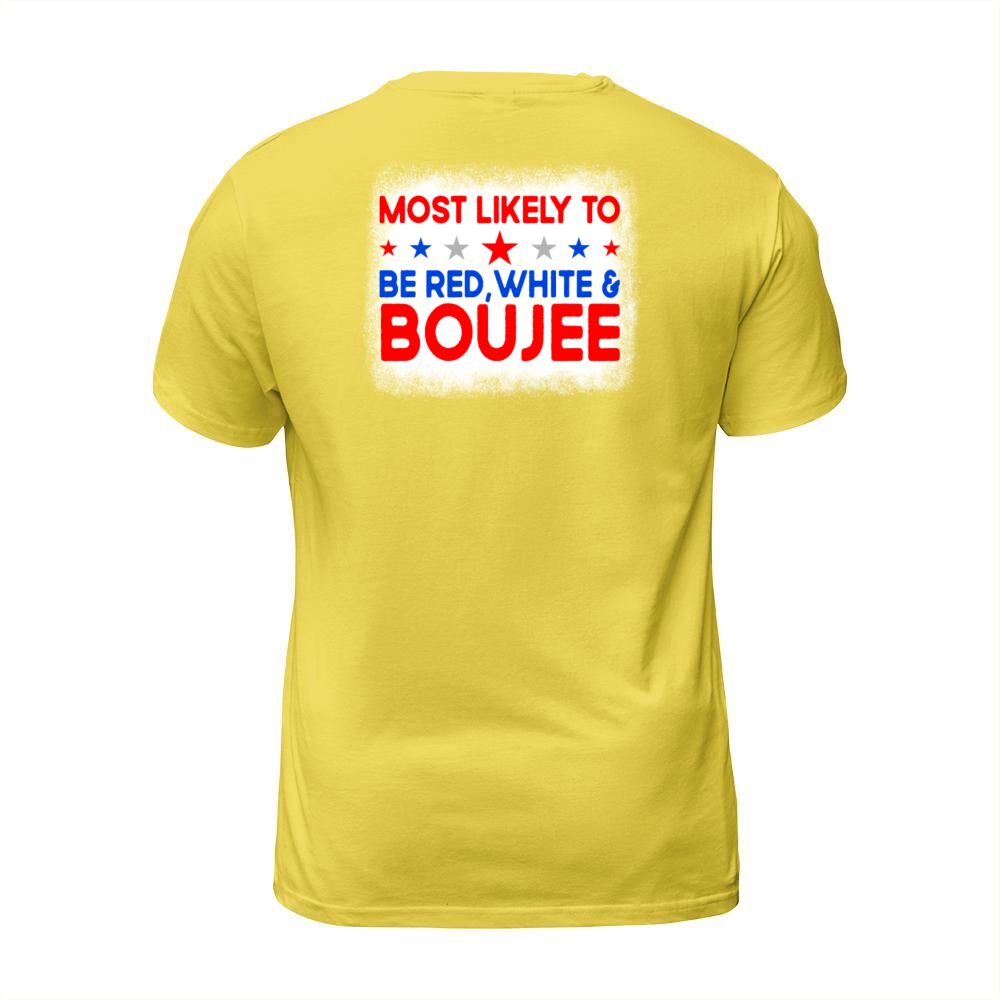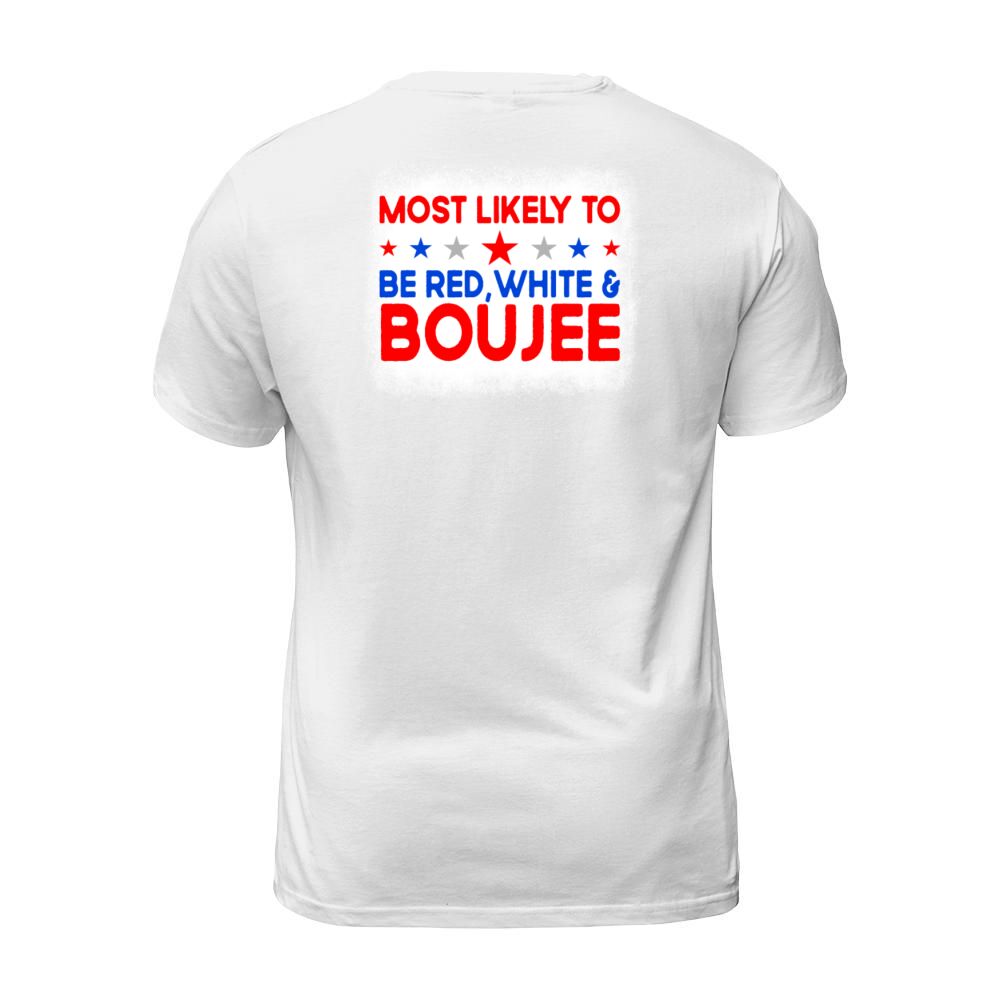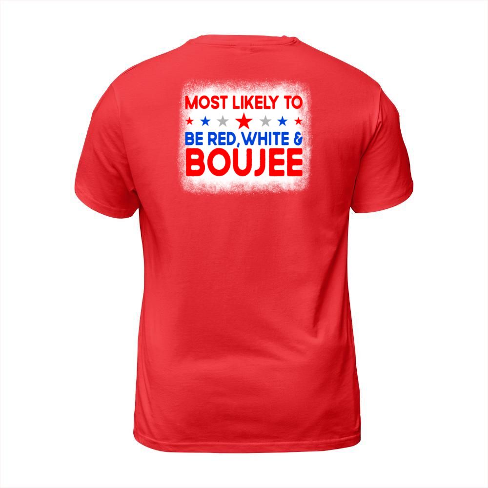 Shop Most Likely To Be Red White Boujee 4th Of July T-Shirt Unisex custom made just for you. Available on many styles, sizes, and colors.