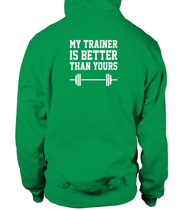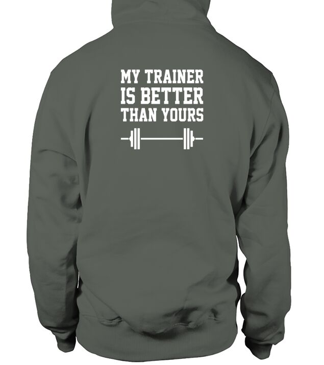 Shop My Trainer Is Better Than Yours Workout Fitness Hoodie Unisex custom made just for you. Available on many styles, sizes, and colors.