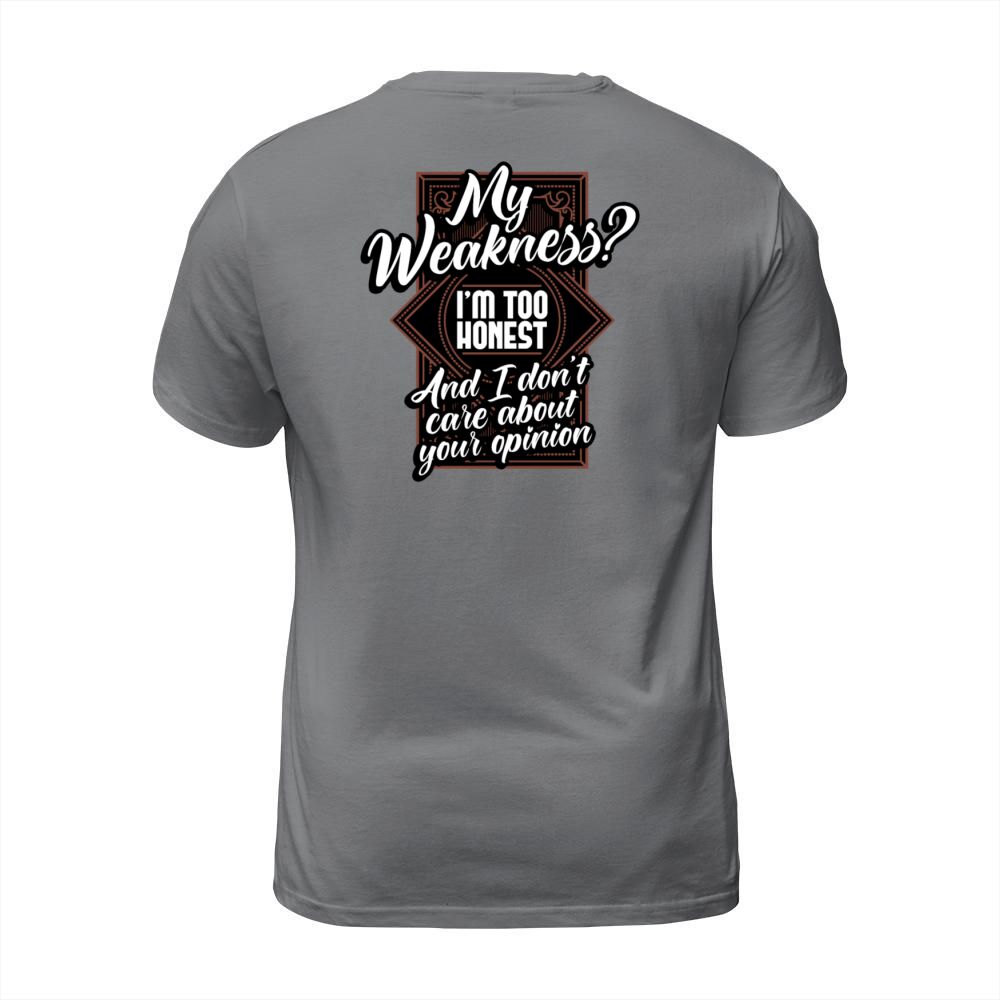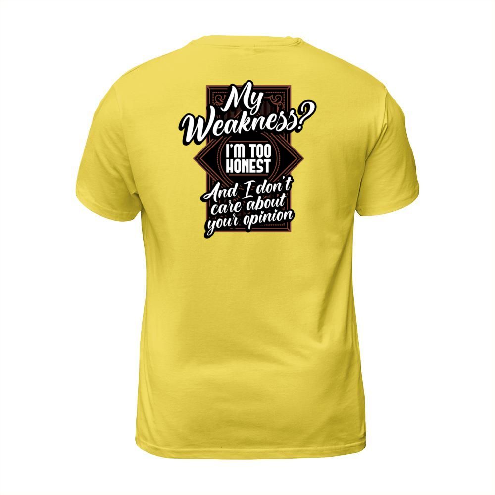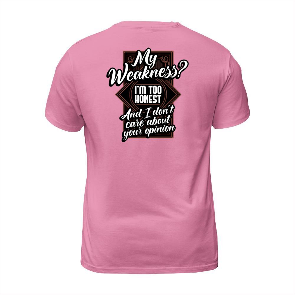 Shop My Weakness Im Too Honest And I Dont Care T-Shirt Unisex custom made just for you. Available on many styles, sizes, and colors.