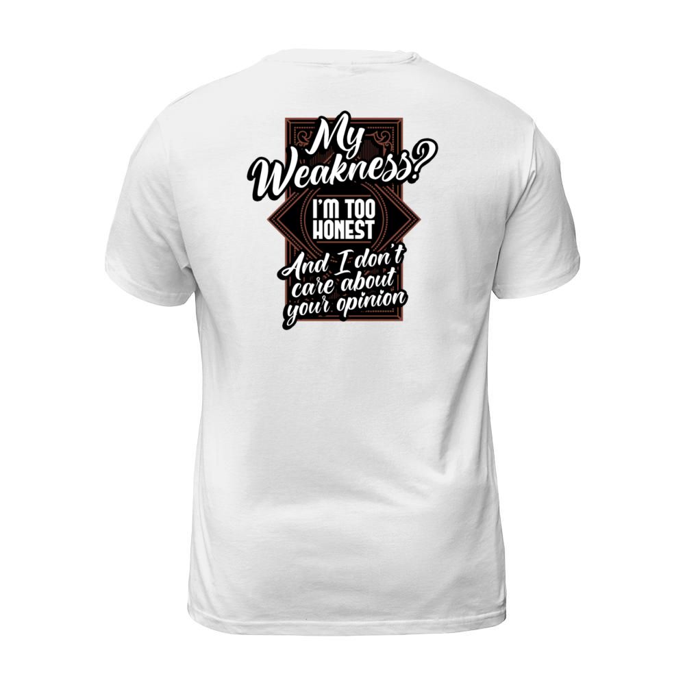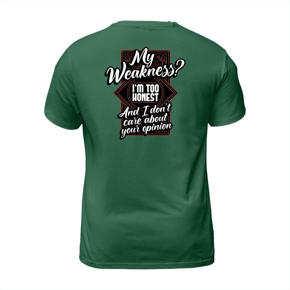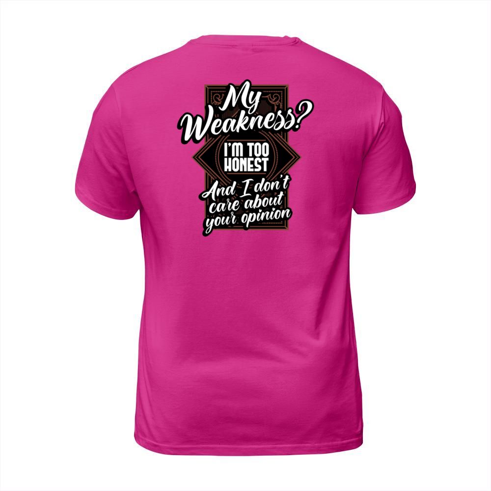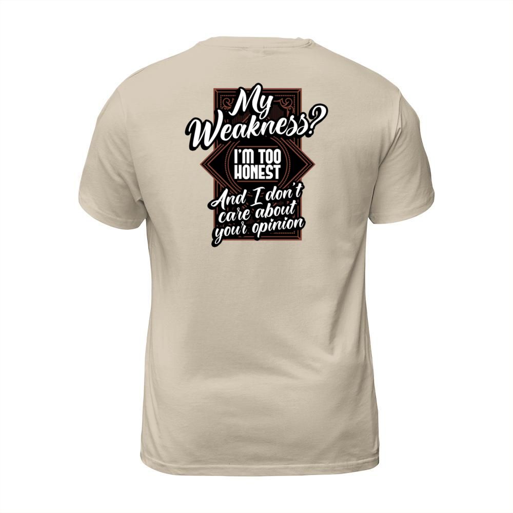 Shop My Weakness Im Too Honest And I Dont Care T-Shirt Unisex custom made just for you. Available on many styles, sizes, and colors.