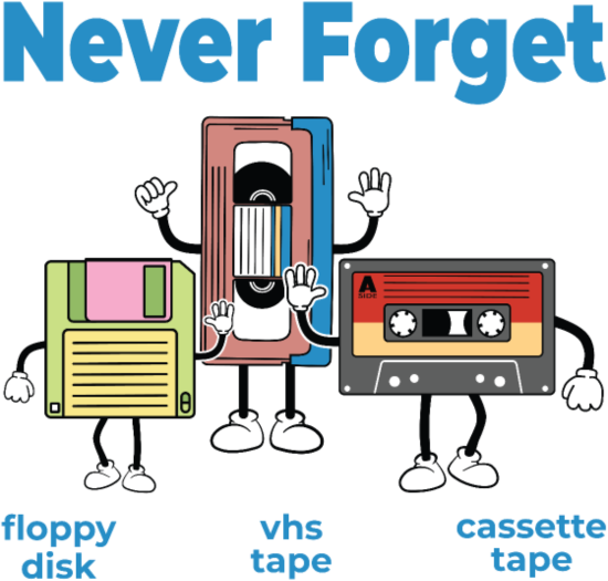 Never Forget Floppy Disk VHS Tape Cassette Tape