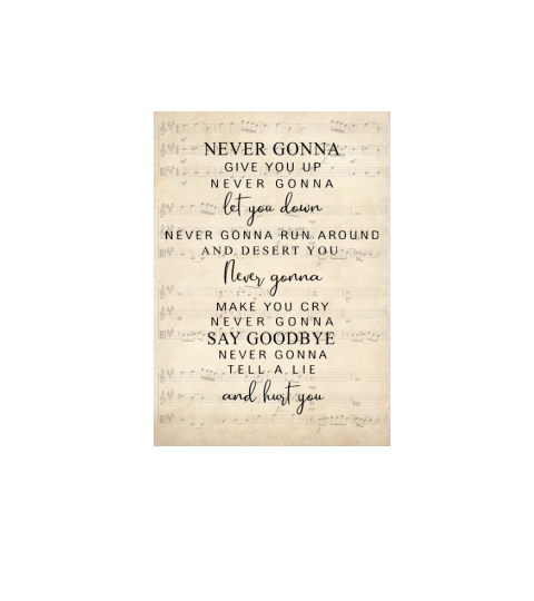 Never gonna give you up Never gonna let you down