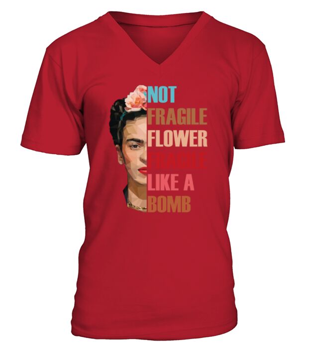 Shop Not Fragile Like A Flower Fragile Like A Bomb Flower Girl shirt V-Neck T-shirt custom made just for you. Available on many styles, sizes, and colors.
