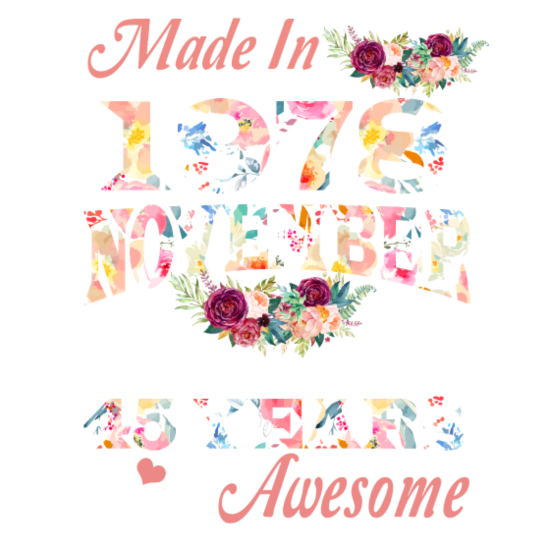 Shop November 1978 Flower 45 Years Of Being Awesome Long sleeved Unisex custom made just for you. Available on many styles, sizes, and colors.