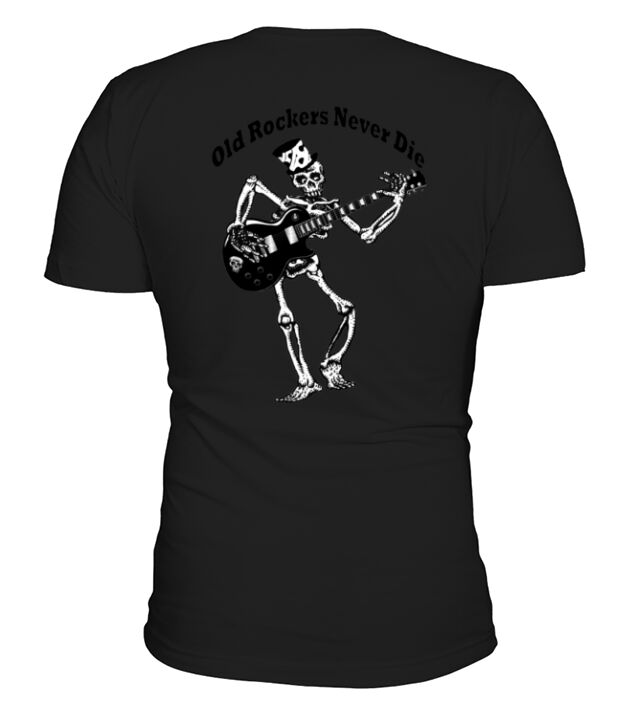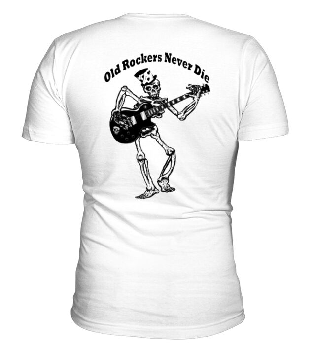 Shop Old Rockers Never Die V-Neck T-shirt custom made just for you. Available on many styles, sizes, and colors.