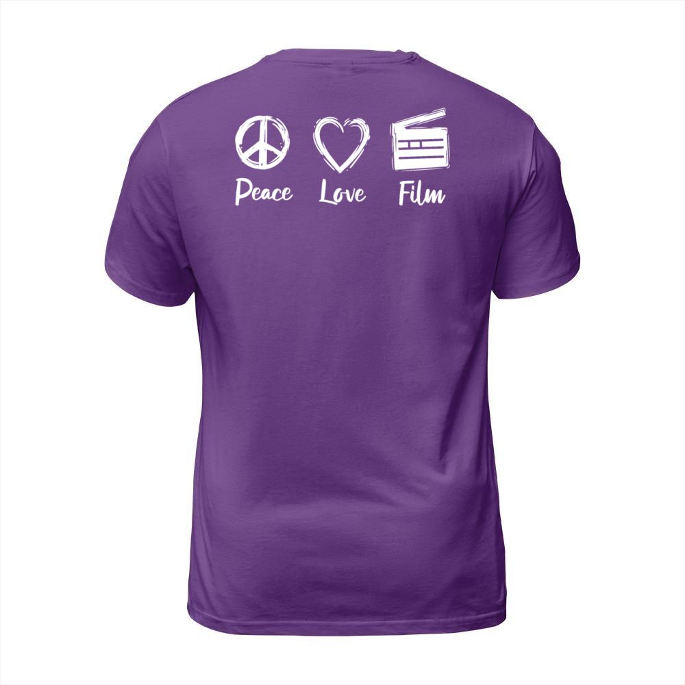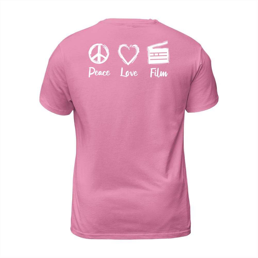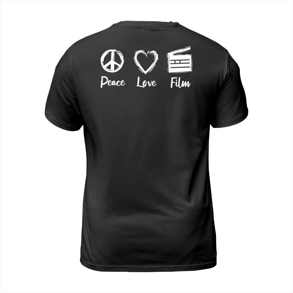 Shop Peace Love Clapperboard T-Shirt Unisex custom made just for you. Available on many styles, sizes, and colors.