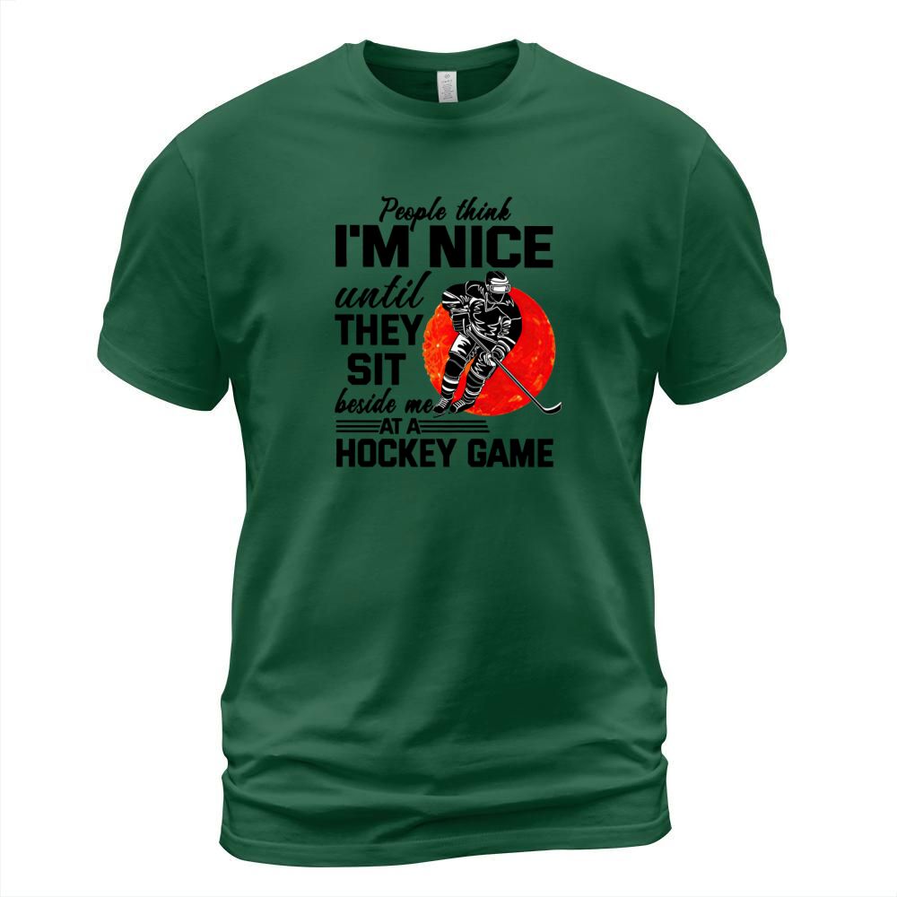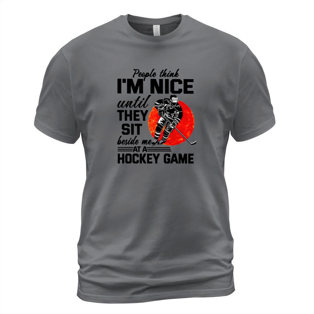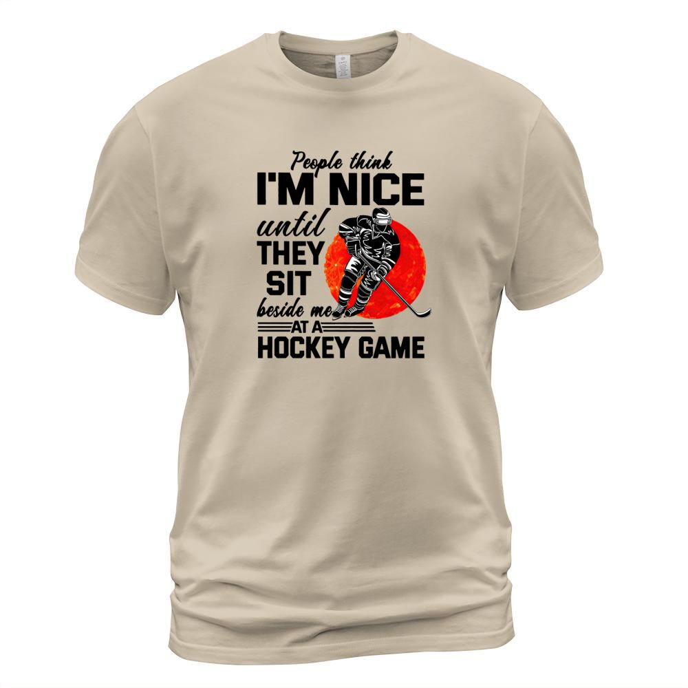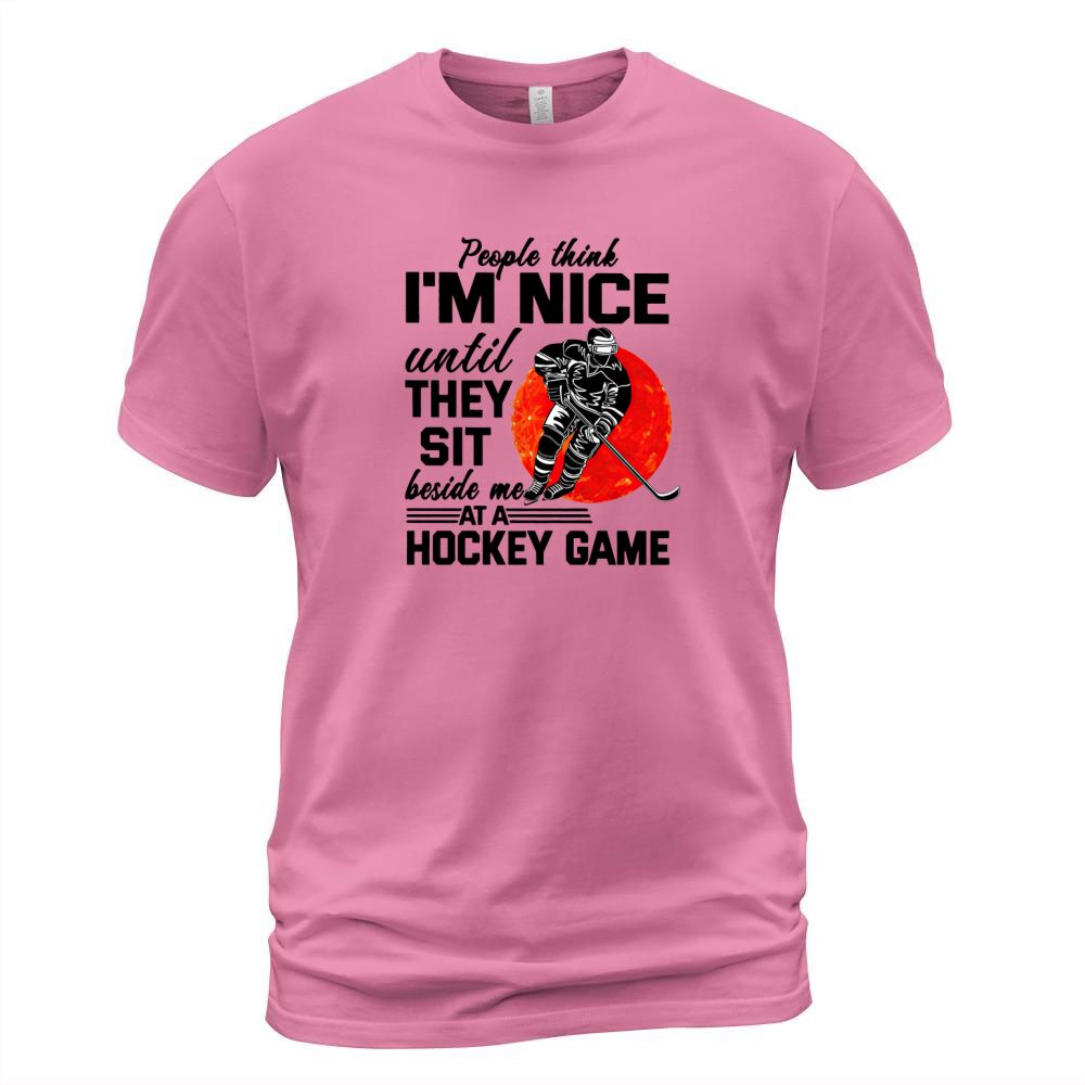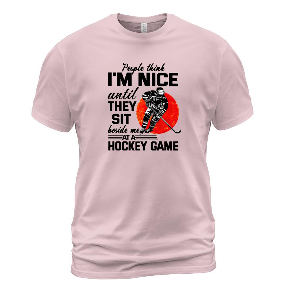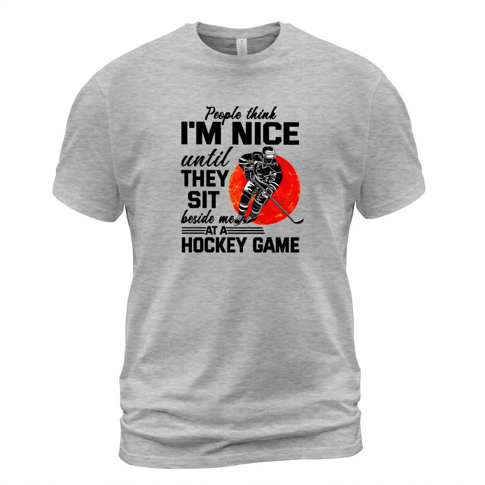 Shop People Think I’m Nice Until They Sit Beside Me At A Hockey Game shirt T-Shirt Unisex custom made just for you. Available on many styles, sizes, and colors.