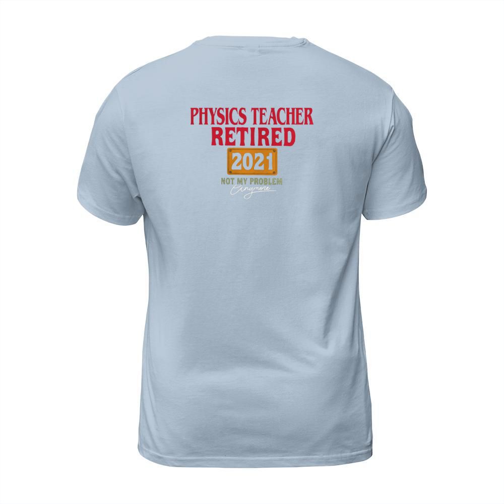 Shop Physics Teacher Retired 2021 Not My Problem Anymore Funny Saying Job Title T-Shirt Unisex custom made just for you. Available on many styles, sizes, and colors.