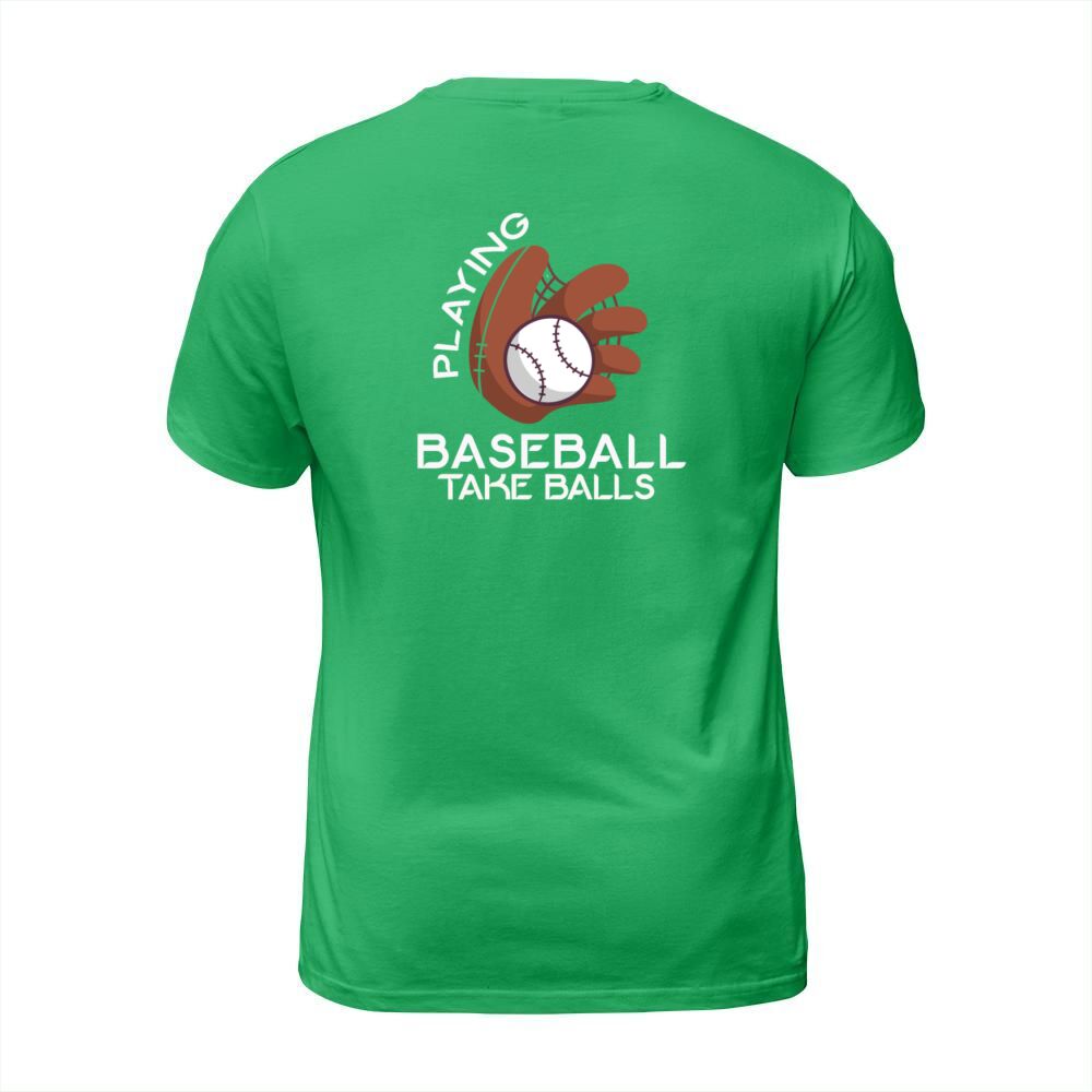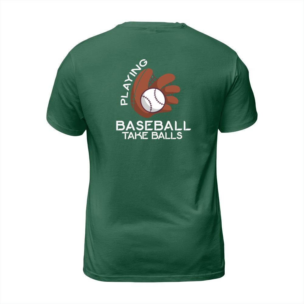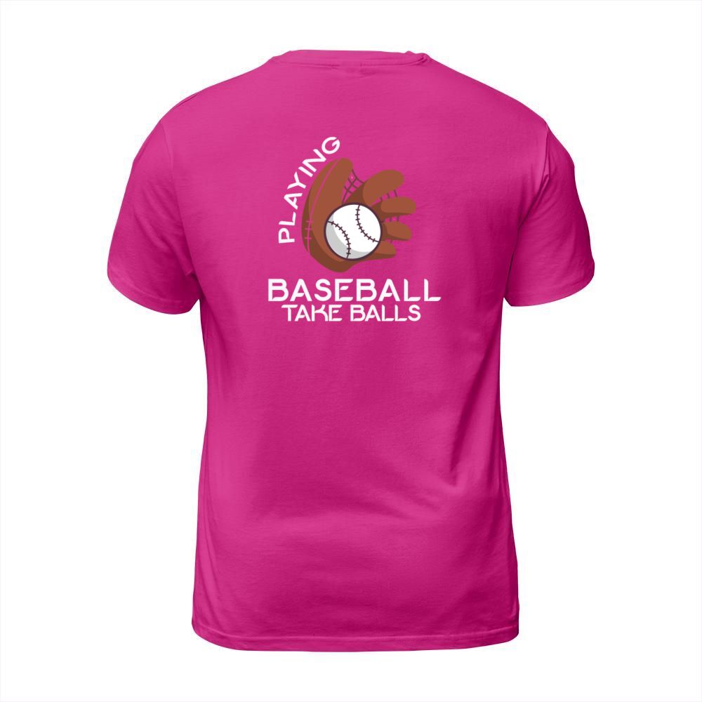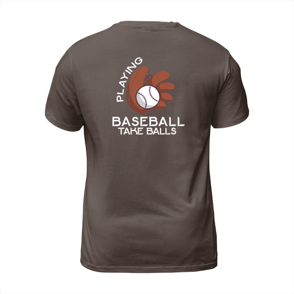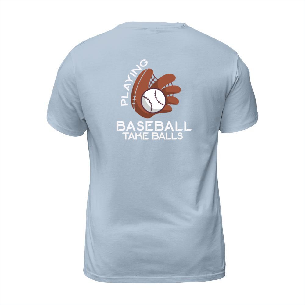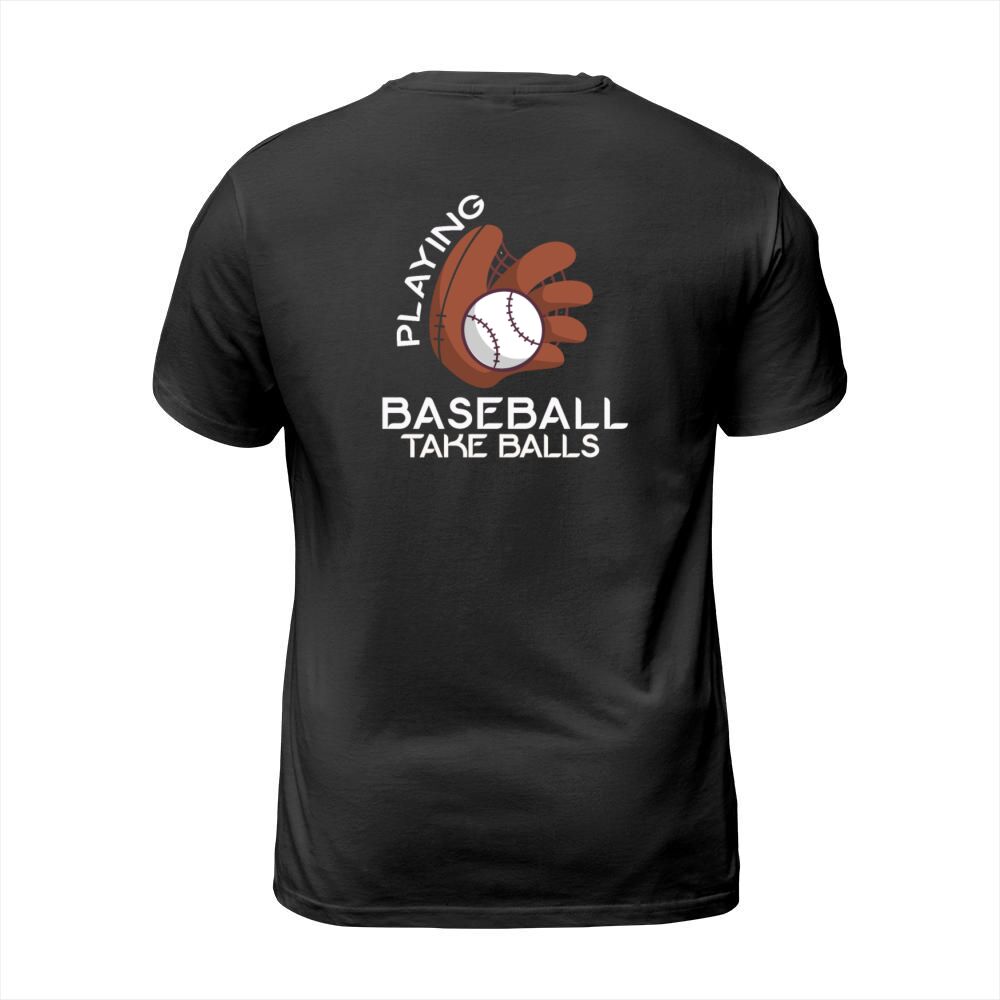 Shop Playing Baseball Takes Balls Humor Pitcher Player T-Shirt Unisex custom made just for you. Available on many styles, sizes, and colors.