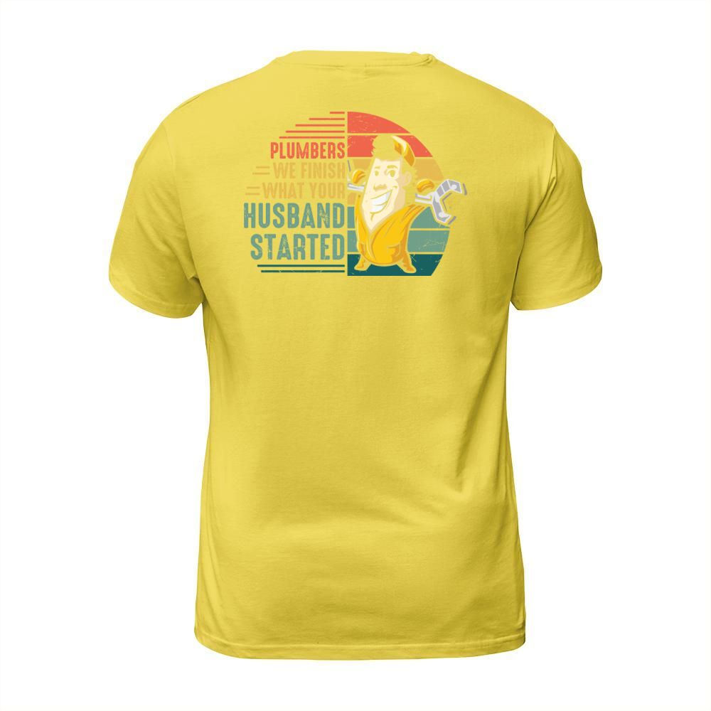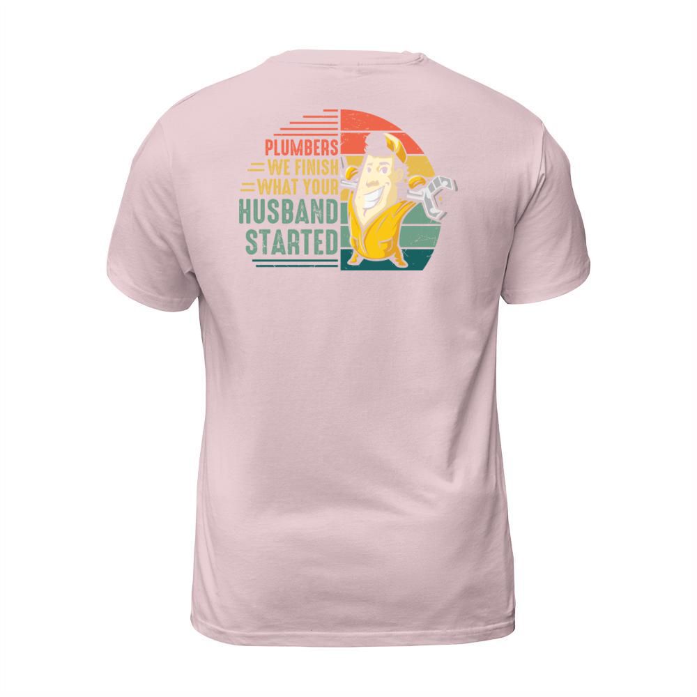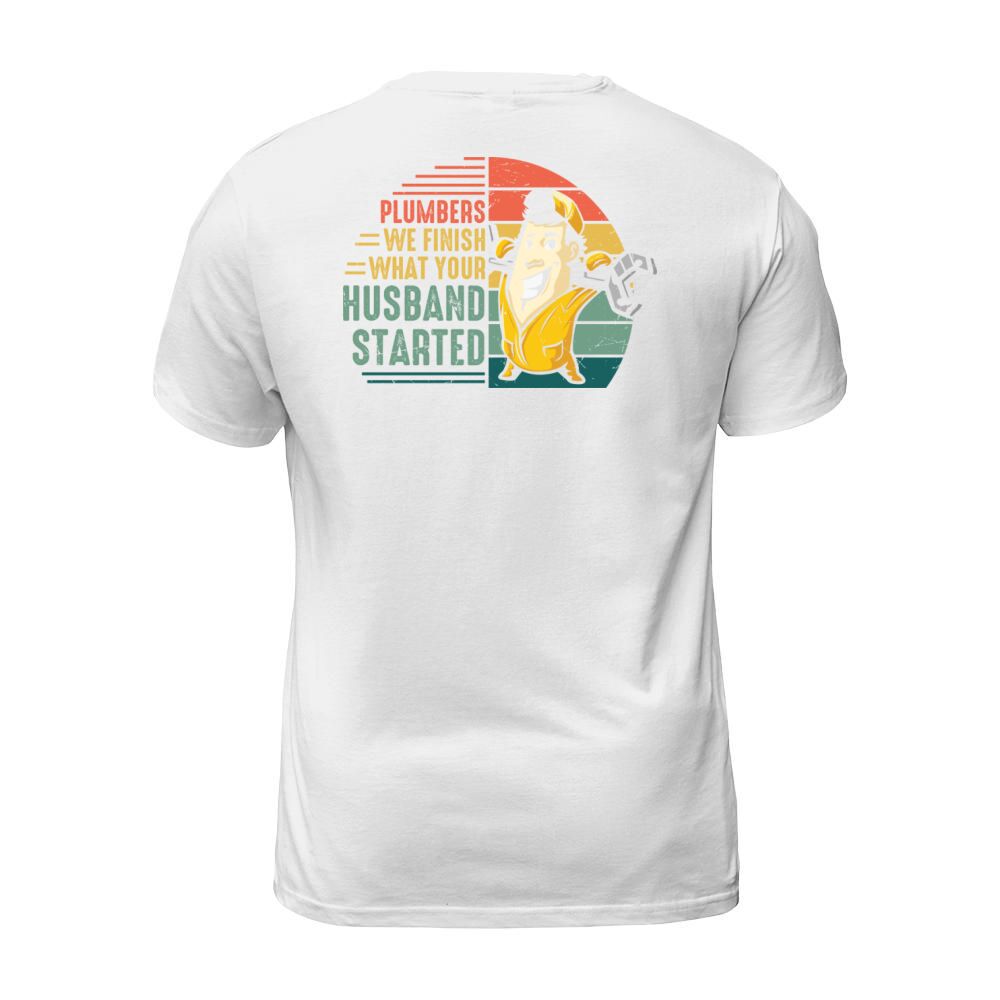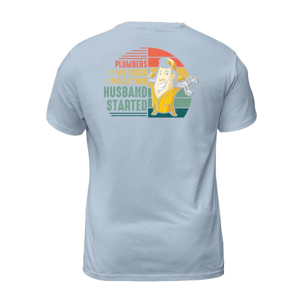 Shop Plumbers we finish what your husband started T-Shirt Unisex custom made just for you. Available on many styles, sizes, and colors.
