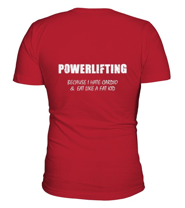 Shop Powerlifting Because I Hate Cardio V-Neck T-shirt custom made just for you. Available on many styles, sizes, and colors.