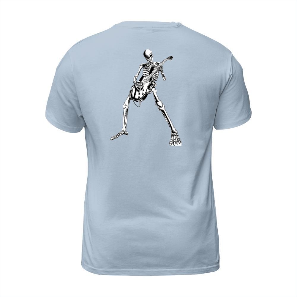 Shop Premium skeleton playing guitar electric Acoustic Classical T-Shirt Unisex custom made just for you. Available on many styles, sizes, and colors.