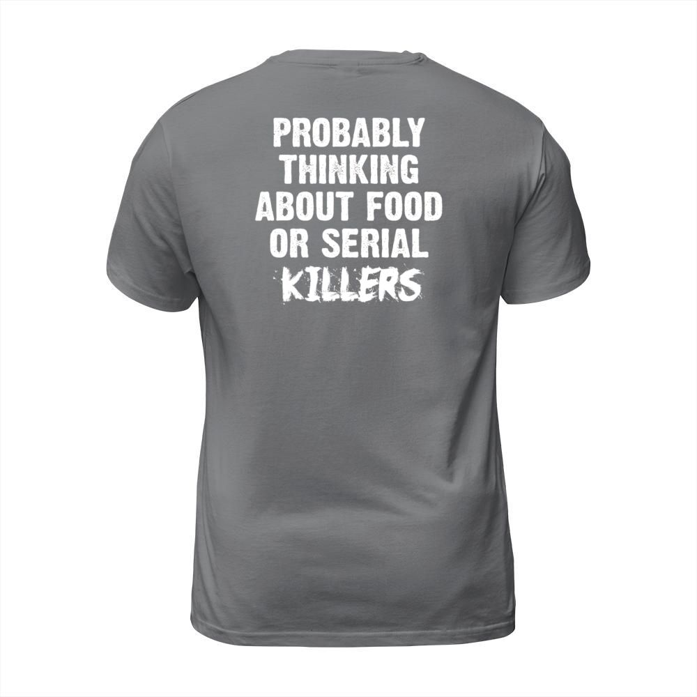 Shop Probably Thinking About Food Or Serial Killers T-Shirt Unisex custom made just for you. Available on many styles, sizes, and colors.