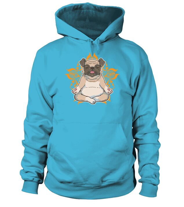 Shop Pug Yoga Men's Hoodie custom made just for you. Available on many styles, sizes, and colors.