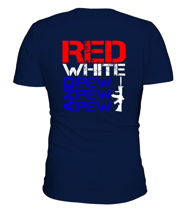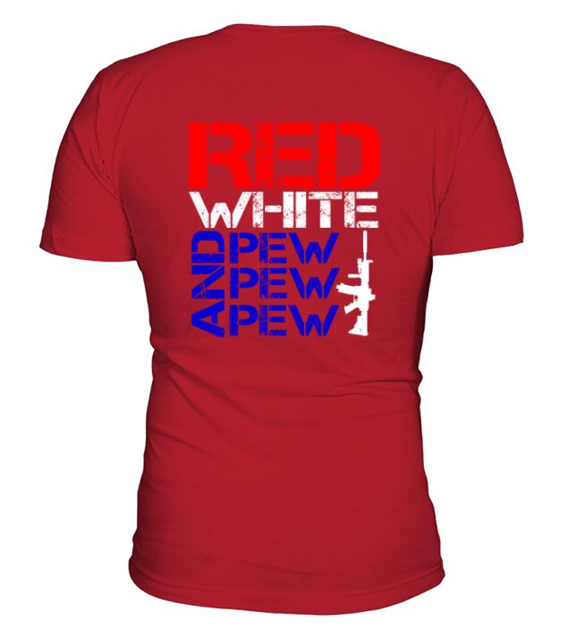 Shop Red white and pew pew pew V-Neck T-shirt custom made just for you. Available on many styles, sizes, and colors.