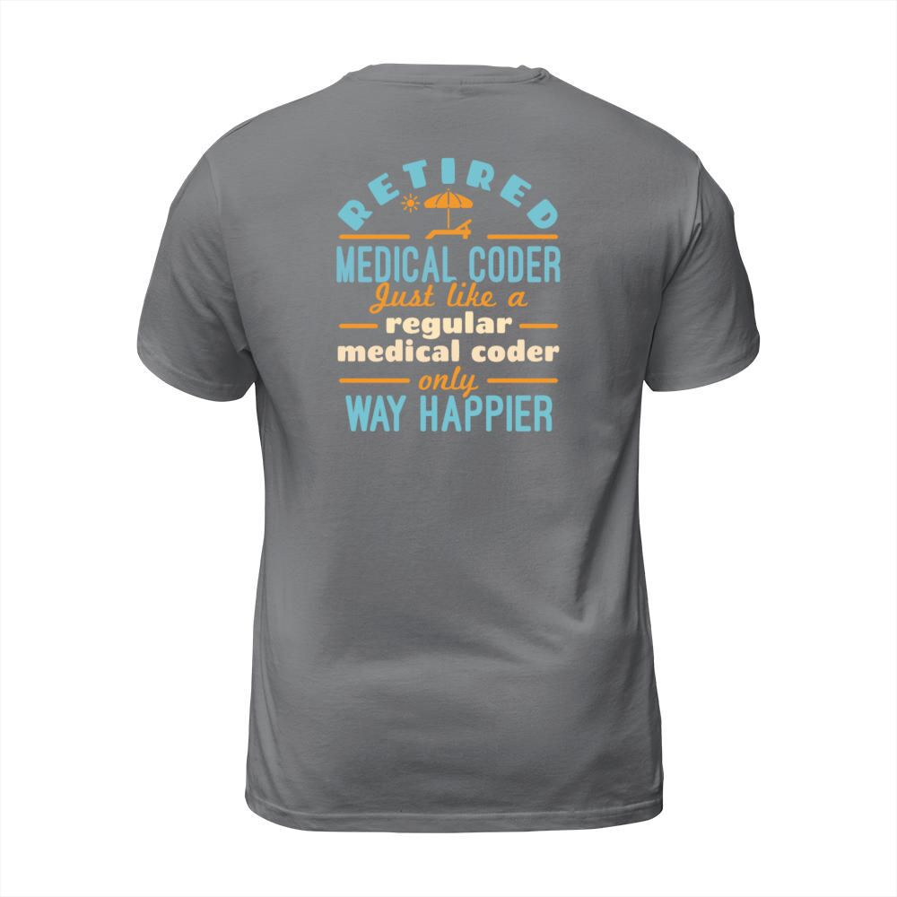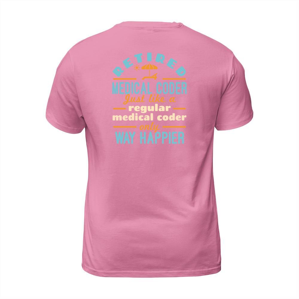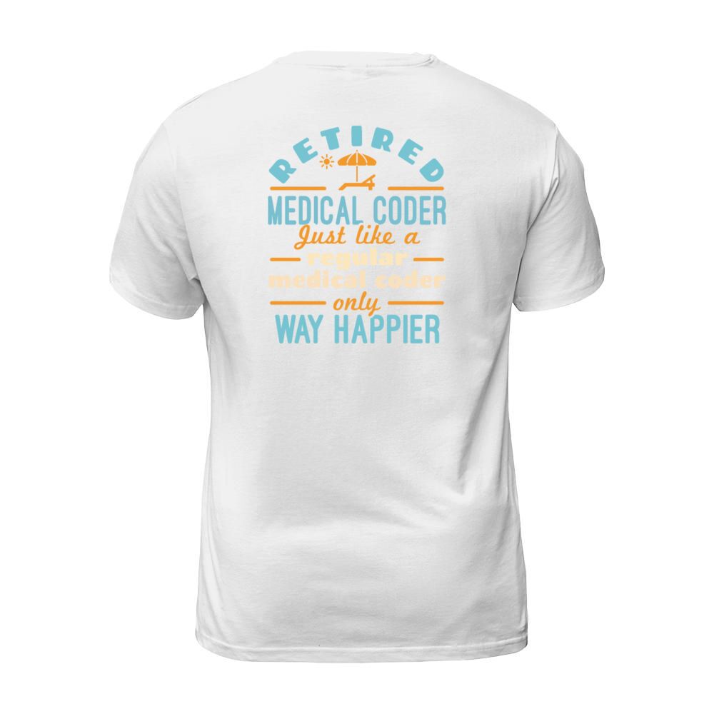 Shop Retired Medical Coder Funny Retirement Happier T-Shirt Unisex custom made just for you. Available on many styles, sizes, and colors.