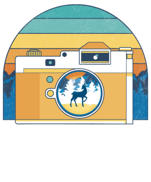 Retro Camera With Deer And Mountains Photographer