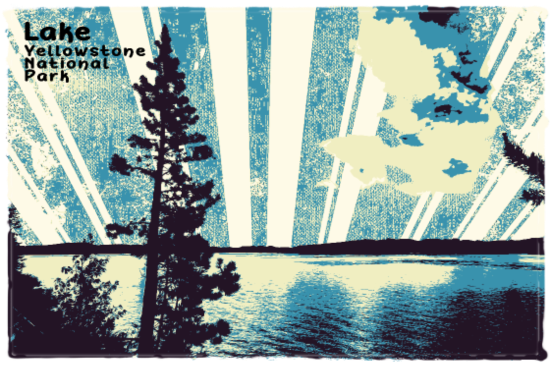 Retro Lake Yellowstone in blue and green