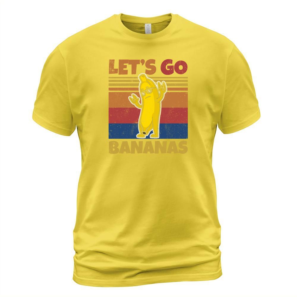 Shop Retro Lets Bananas Funny Rocker Banana T-Shirt Unisex custom made just for you. Available on many styles, sizes, and colors.
