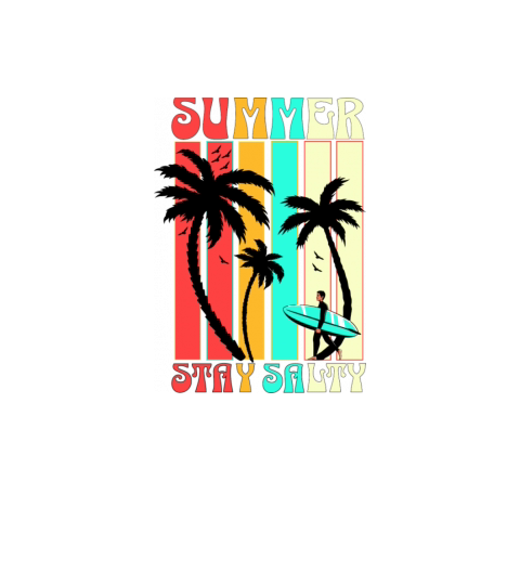 Retro Summer With Palm Trees And Surfers