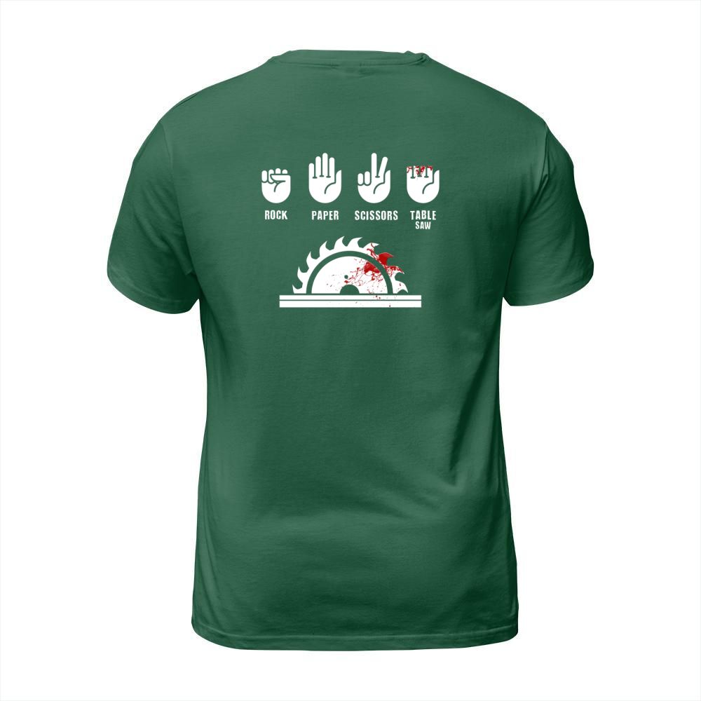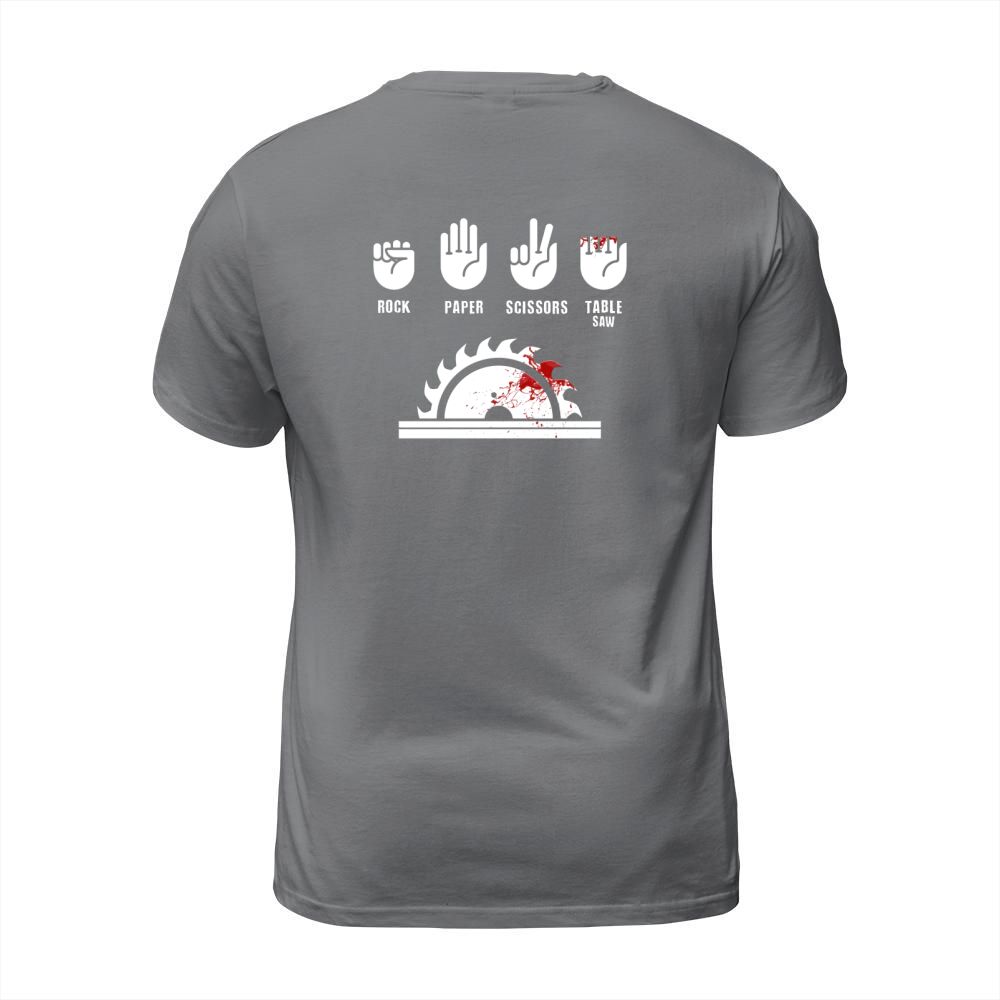 Shop Rock Paper Scissors Table Saw T-Shirt Unisex custom made just for you. Available on many styles, sizes, and colors.