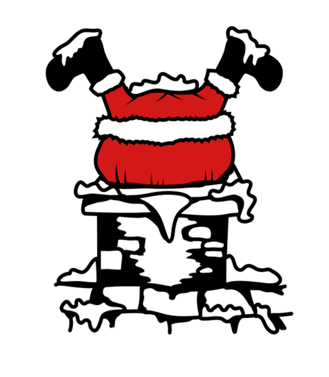 Merry Christmas Santa Claus stuck in the chimney