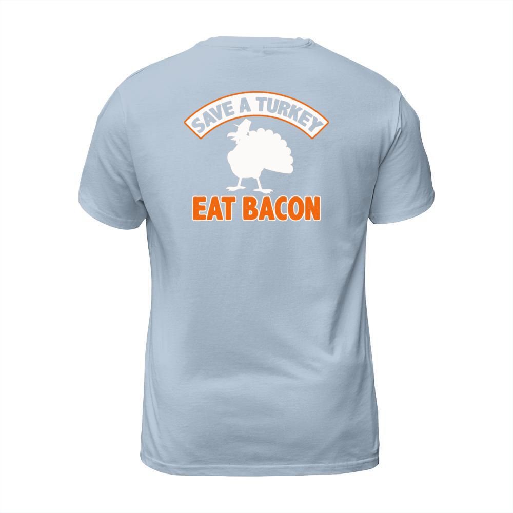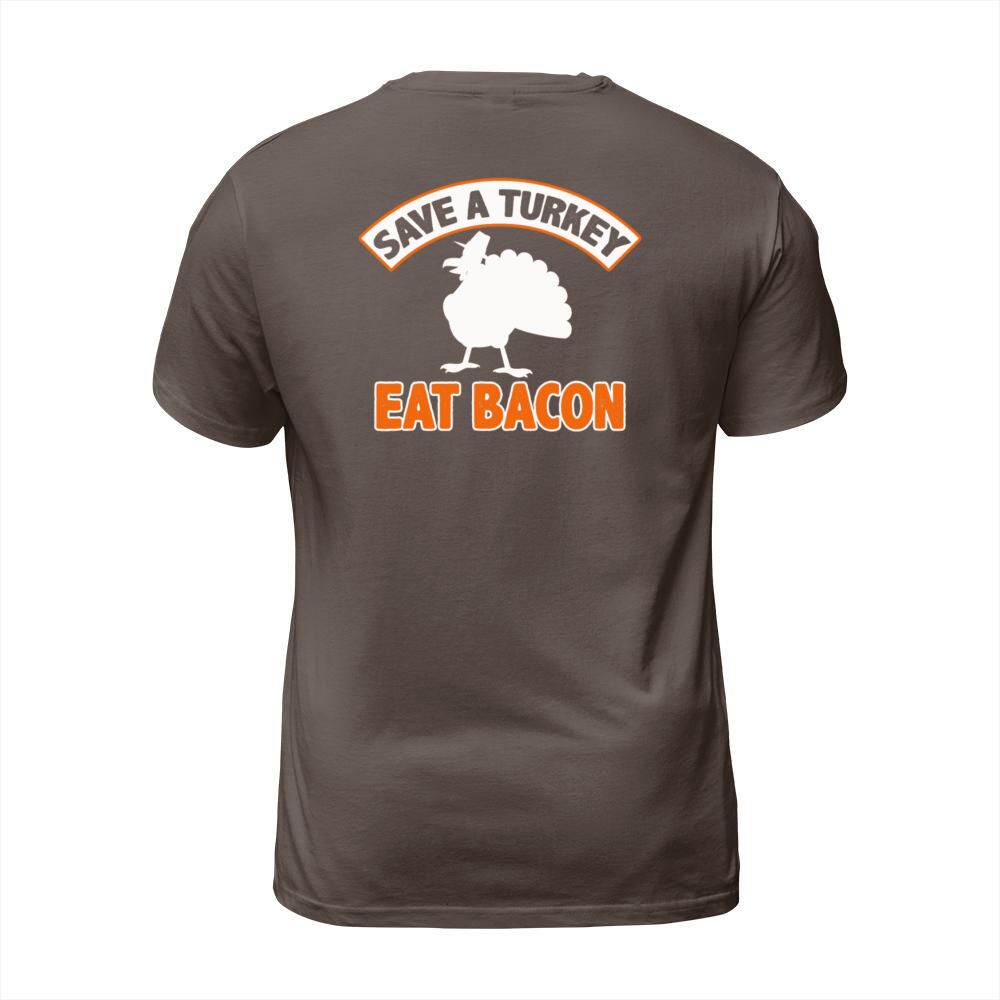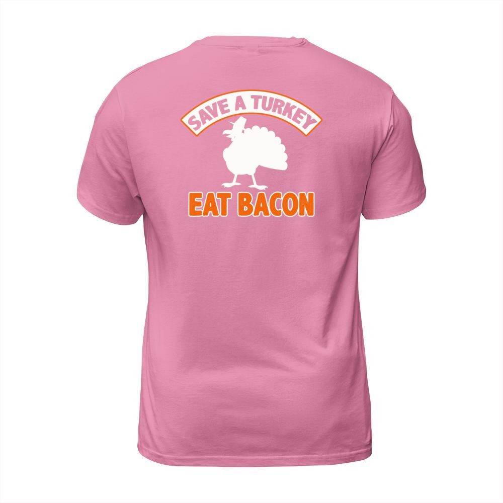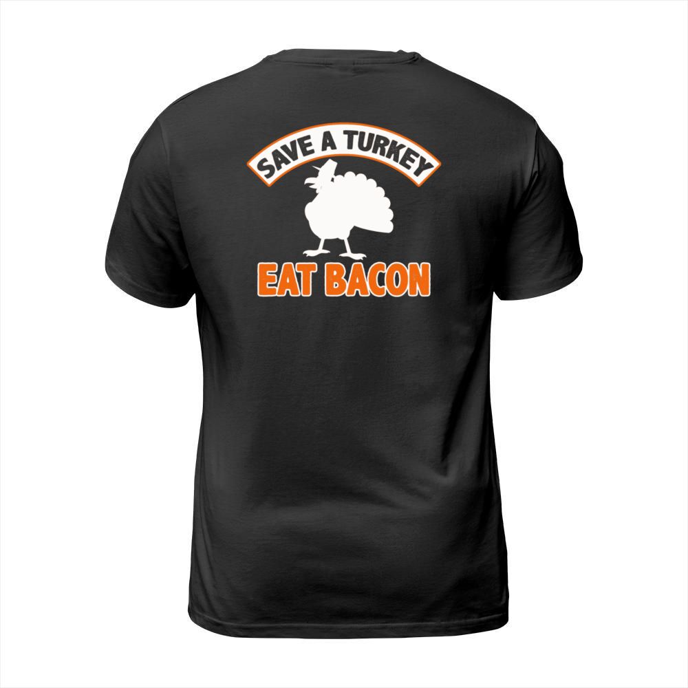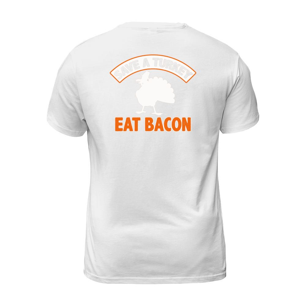 Shop Save A Turkey Eat Bacon Pork Funny Thanksgiving Men's T-Shirt custom made just for you. Available on many styles, sizes, and colors.
