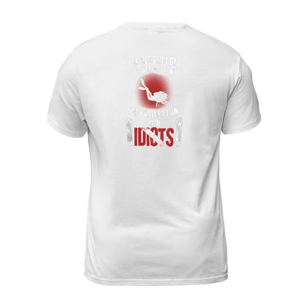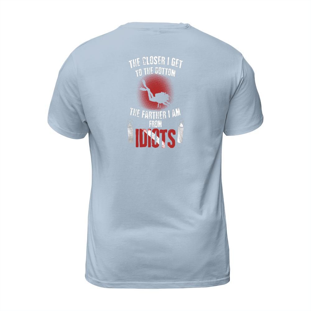 Shop Scuba Diving The closer i get to the bottom the farther i am from idiots T-Shirt Unisex custom made just for you. Available on many styles, sizes, and colors.