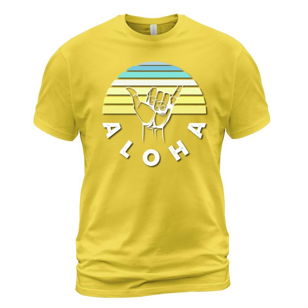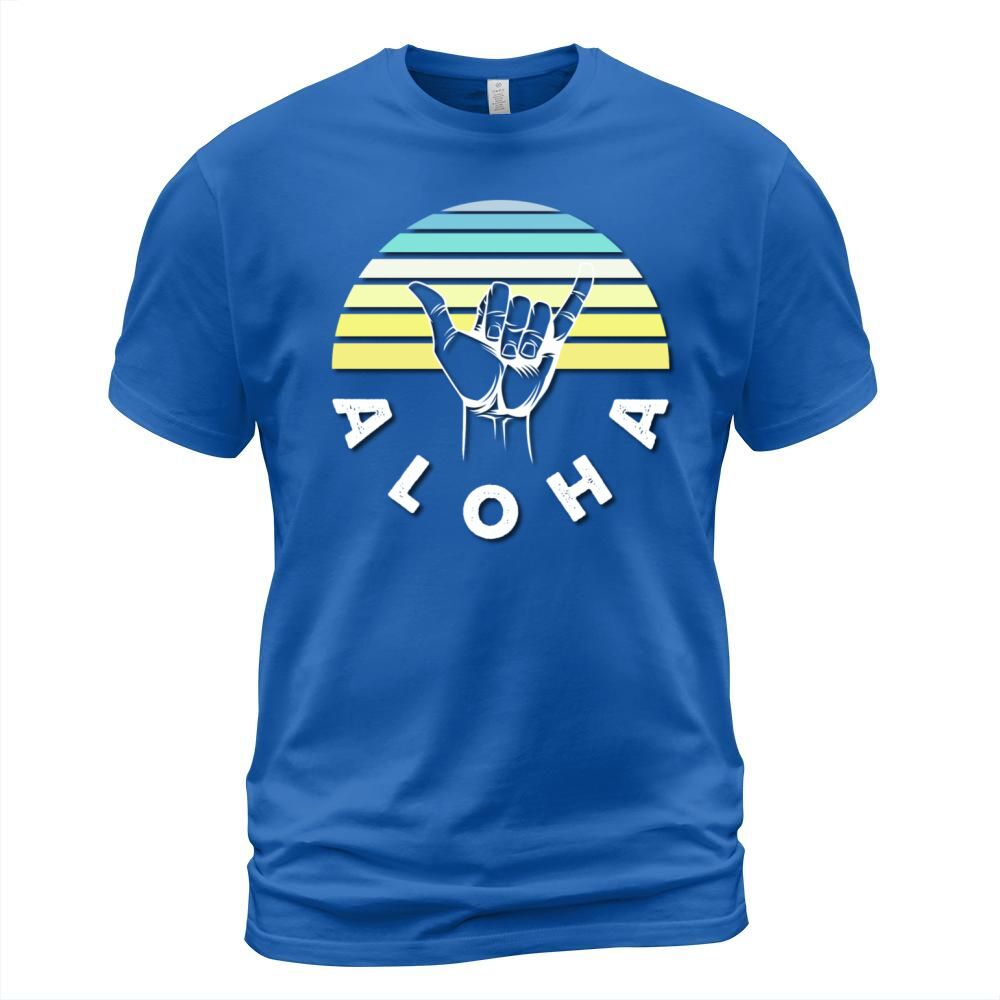 Shop Shaka sign Good Vibes Hang Loose Aloha Hawaiian T-Shirt Unisex custom made just for you. Available on many styles, sizes, and colors.