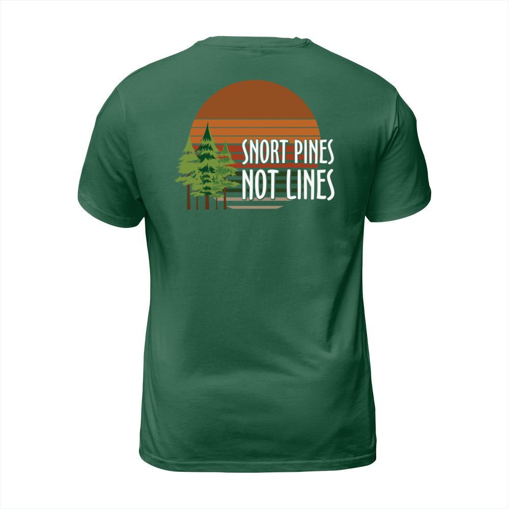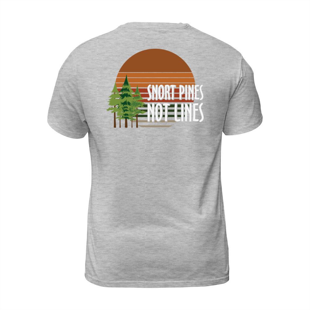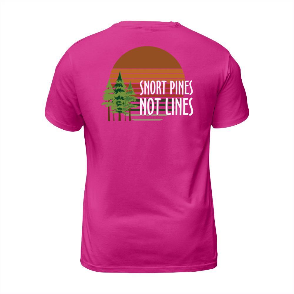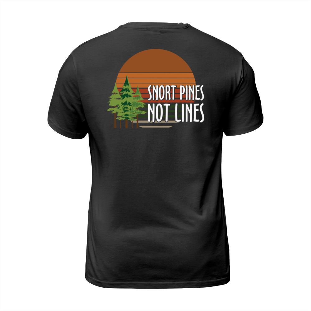 Shop Snort pines not lines T-Shirt Unisex custom made just for you. Available on many styles, sizes, and colors.