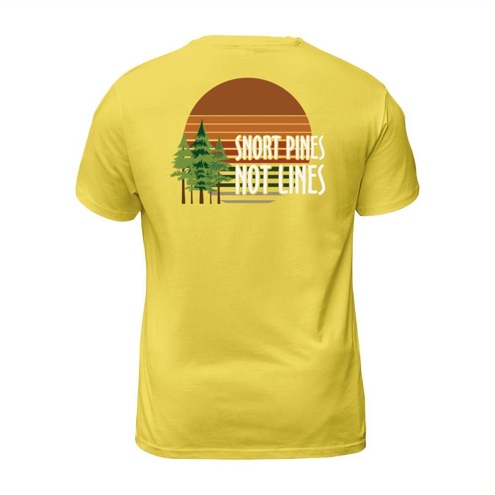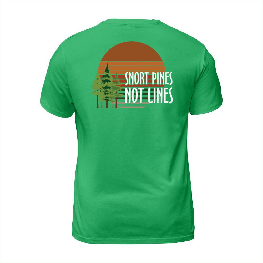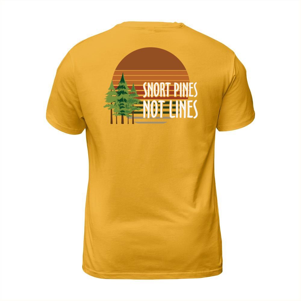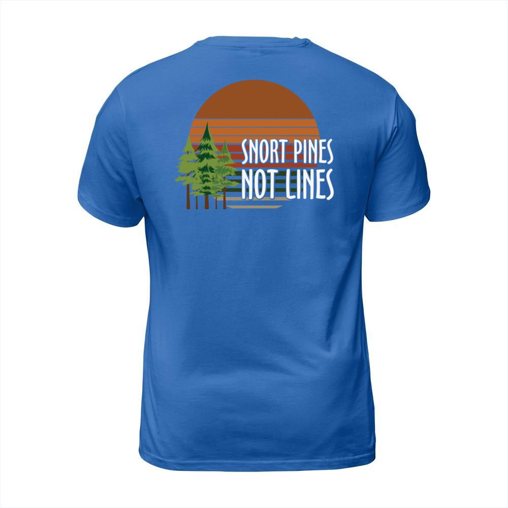 Shop Snort pines not lines T-Shirt Unisex custom made just for you. Available on many styles, sizes, and colors.
