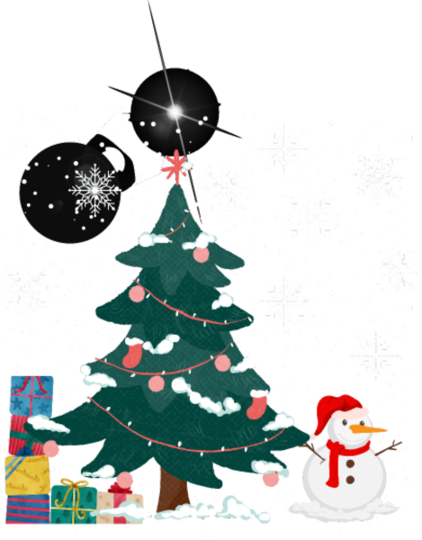 Snowman with Christmas tree and gifts