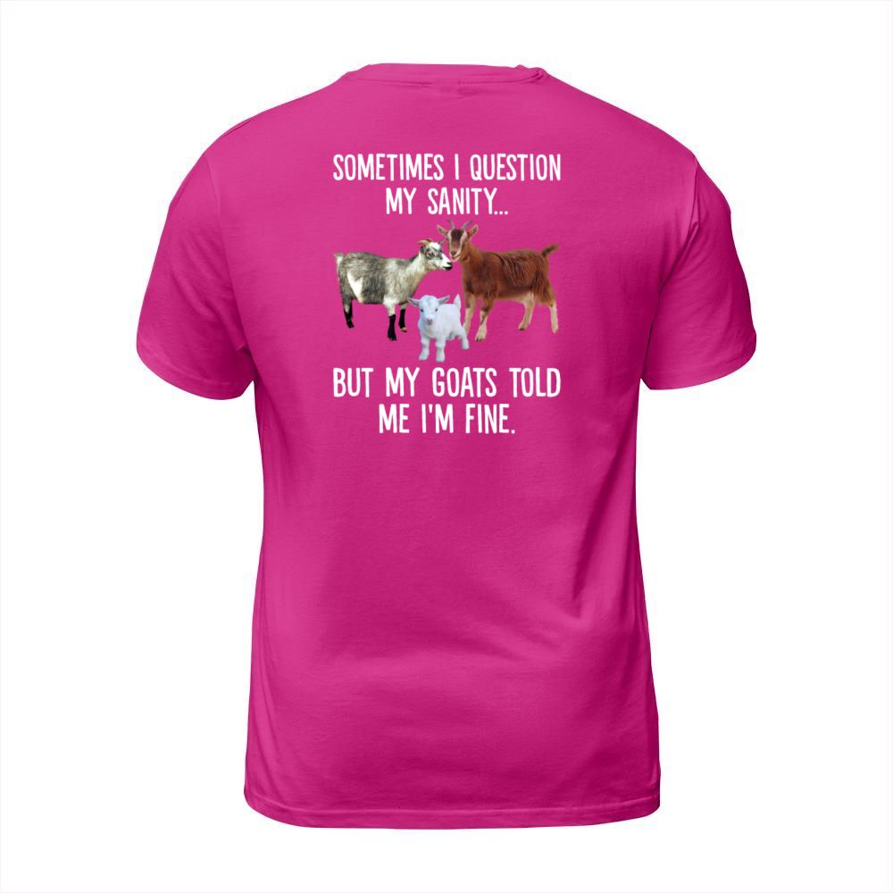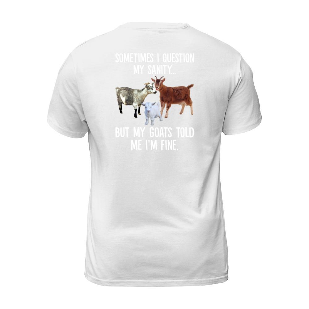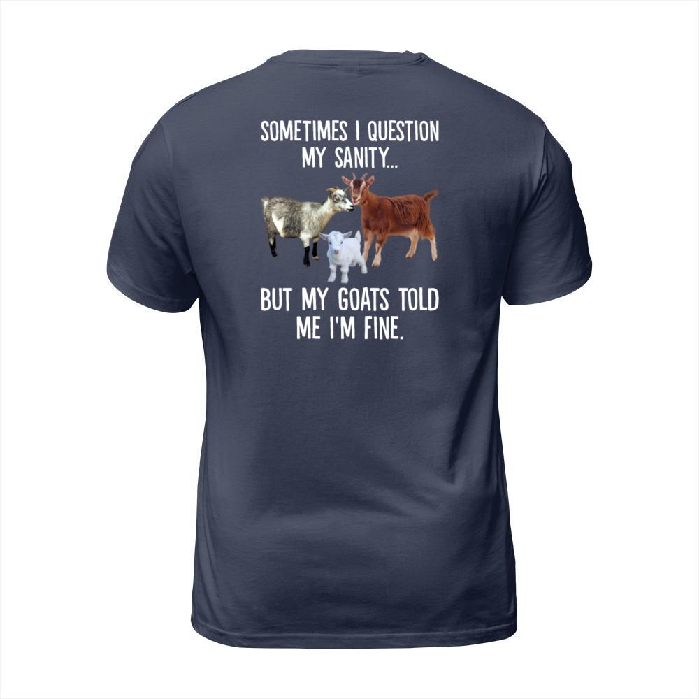 Shop Sometimes I Question My Sanity But My Goats Told T-Shirt Unisex custom made just for you. Available on many styles, sizes, and colors.