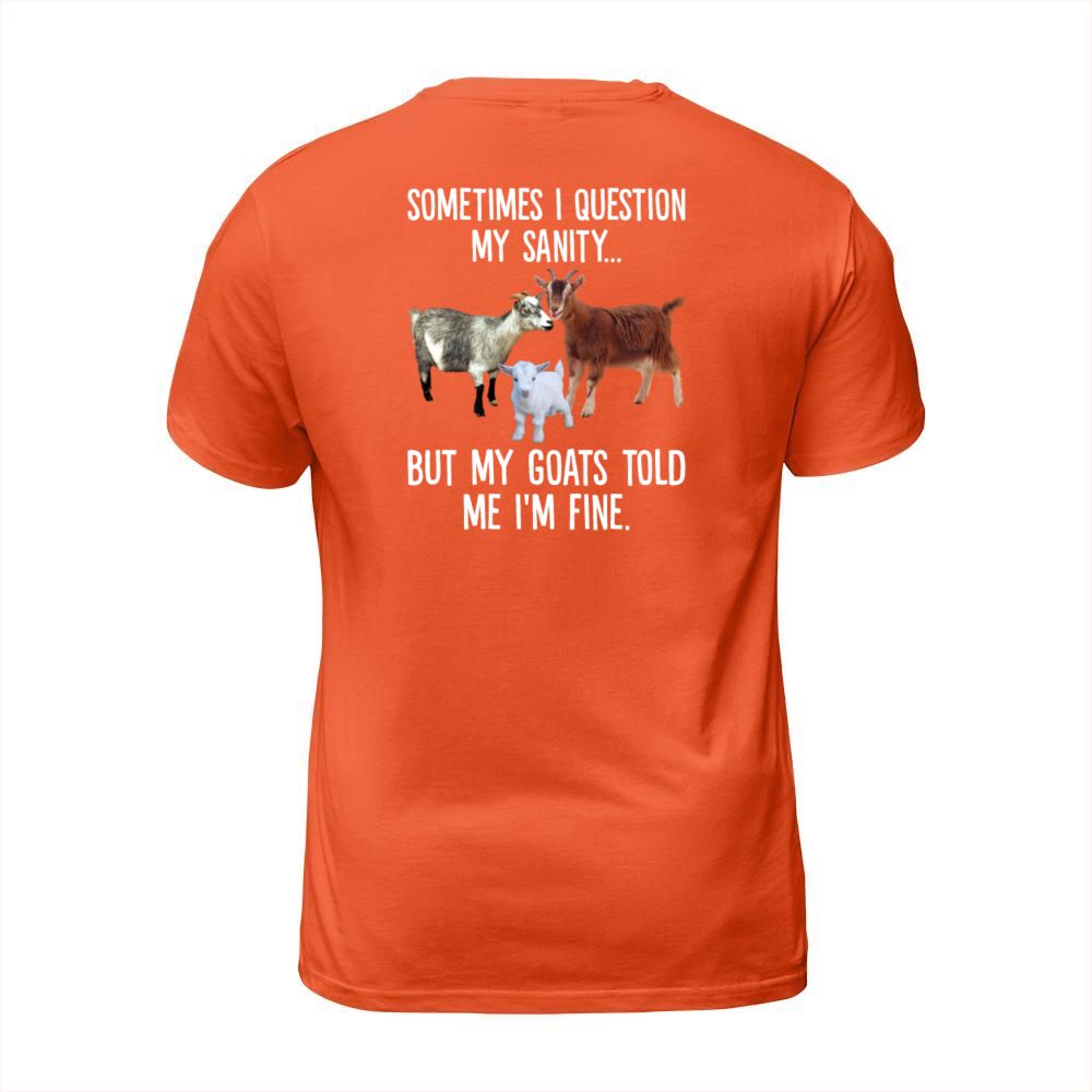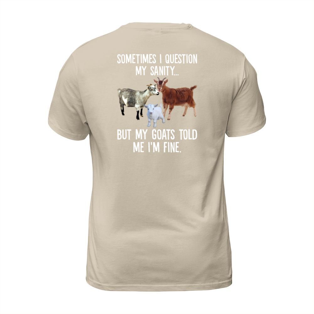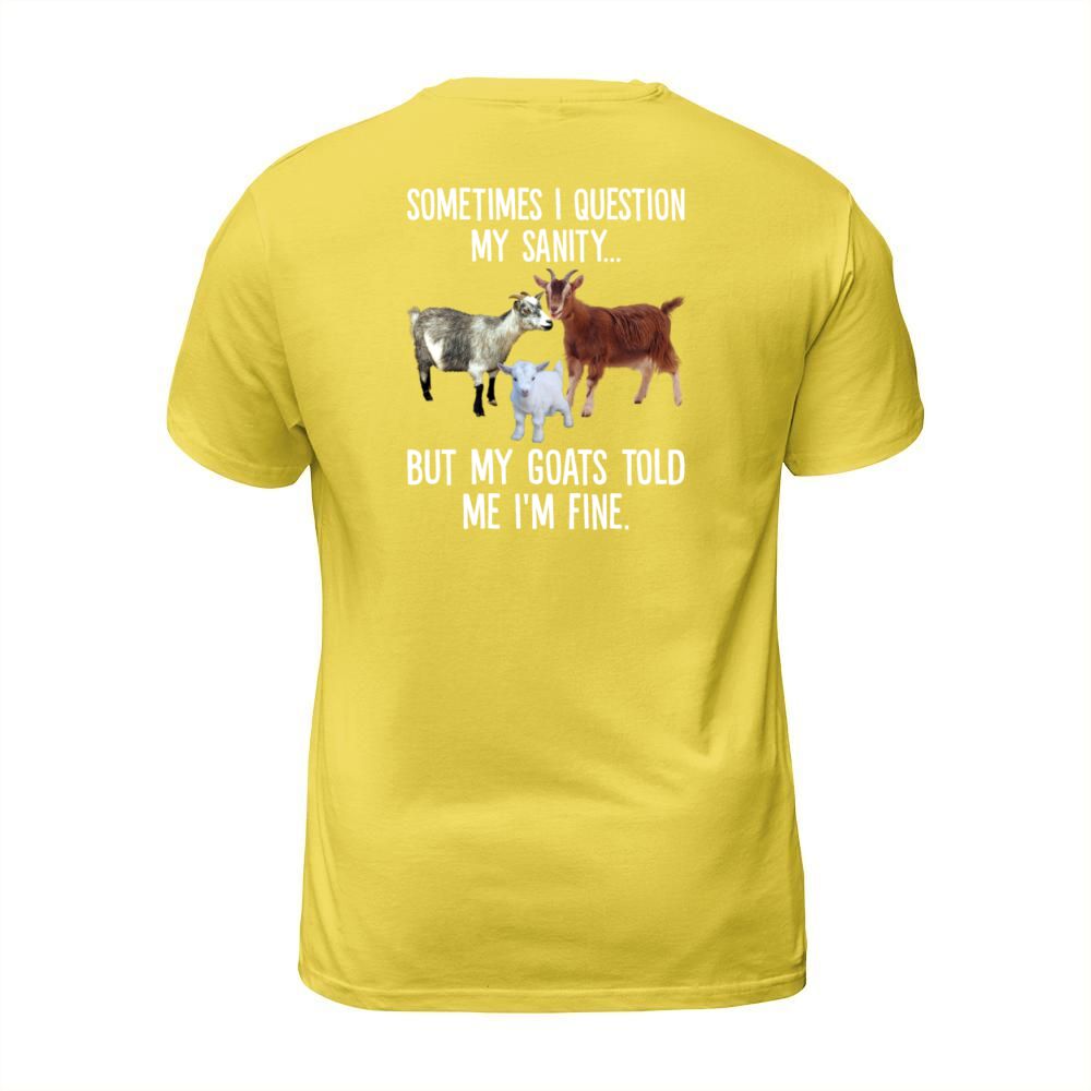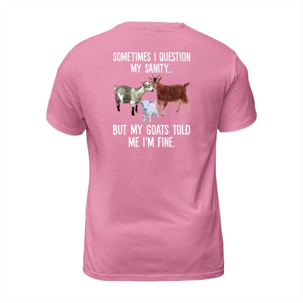 Shop Sometimes I Question My Sanity But My Goats Told T-Shirt Unisex custom made just for you. Available on many styles, sizes, and colors.