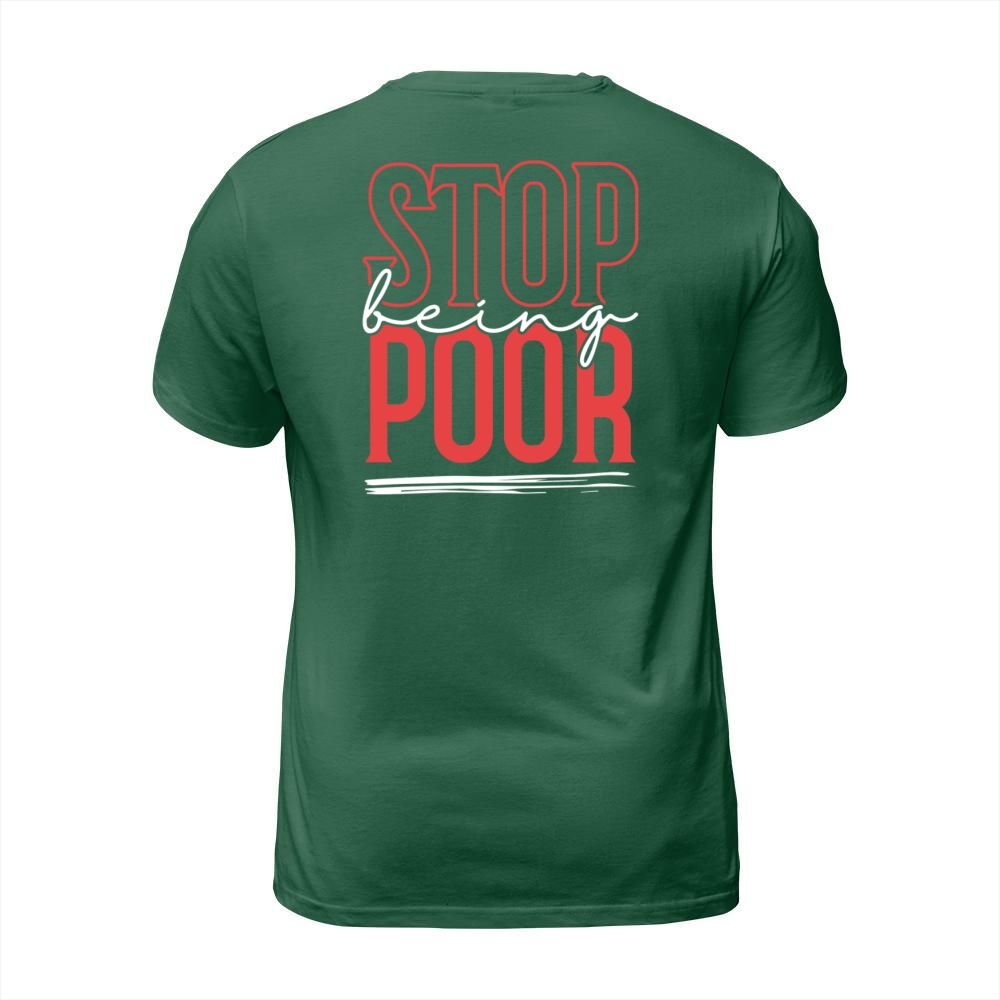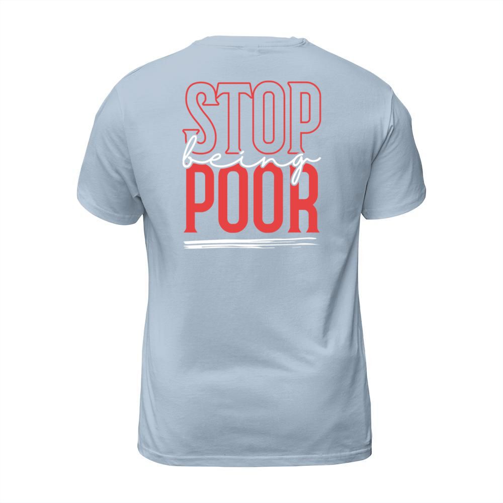 Shop STOP BEING POOR T-Shirt Unisex custom made just for you. Available on many styles, sizes, and colors.